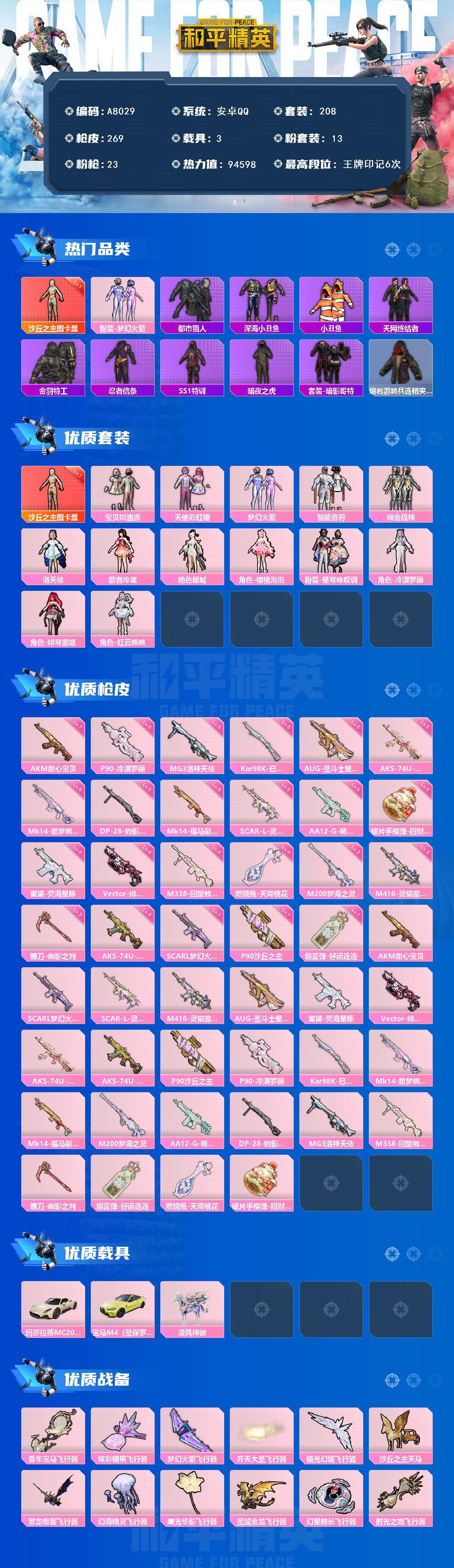 安卓手Q-11王牌印记-10粉装-12特效枪-2载具-66490