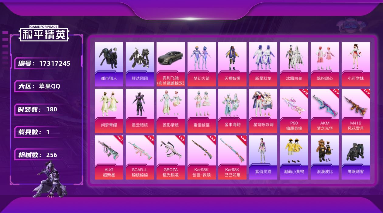 2粉装-3特效枪-110套装-146枪皮-8王牌印记-超级王牌-41988热力值