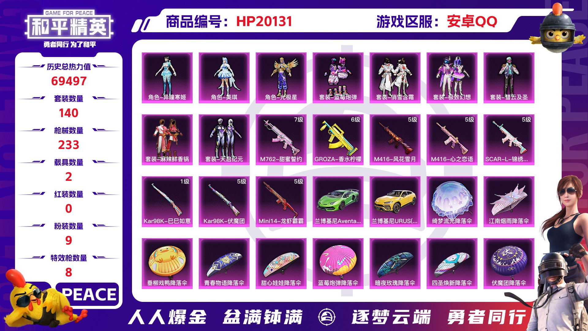 安卓 手Q-9粉装-6特效枪-0载具-2粉色飞行器-50948热力值-10王牌印