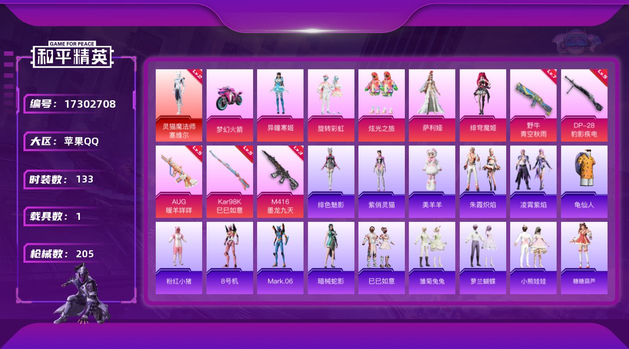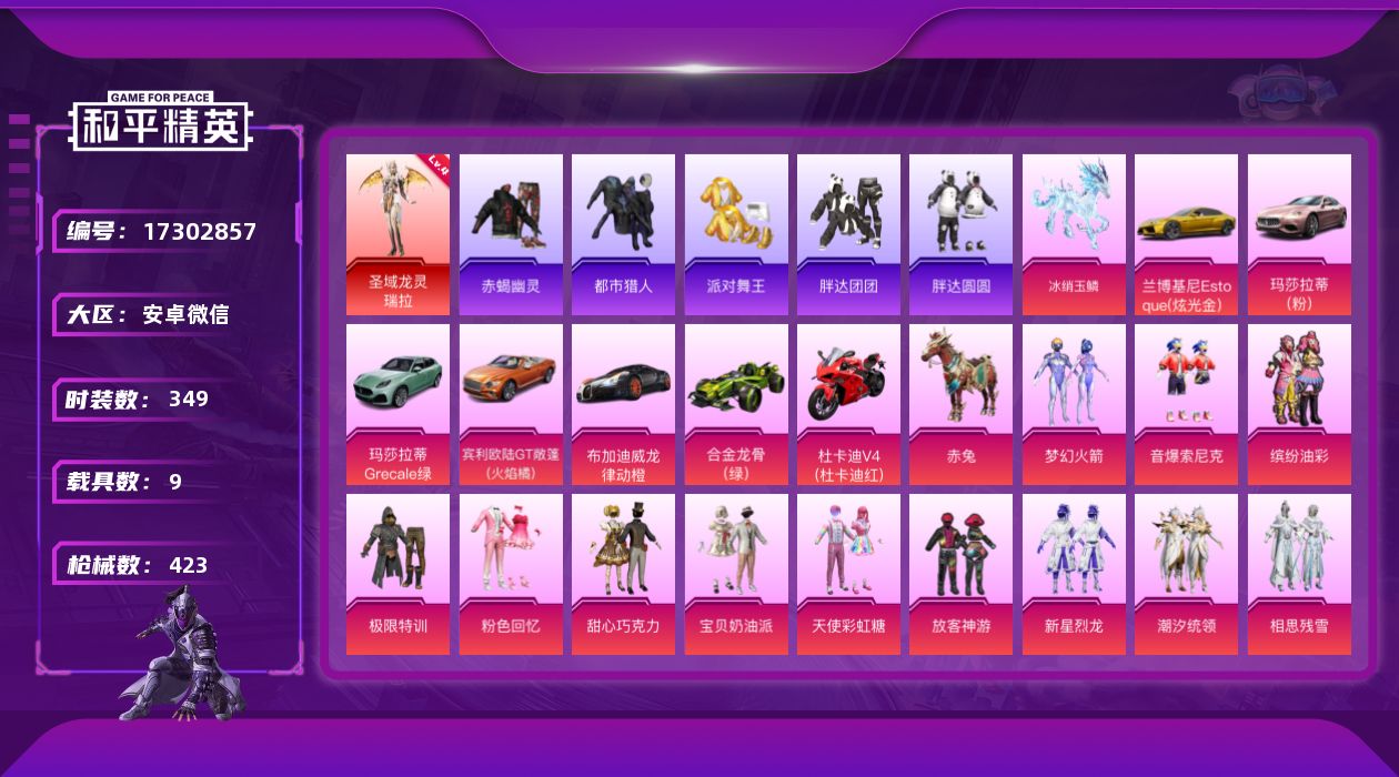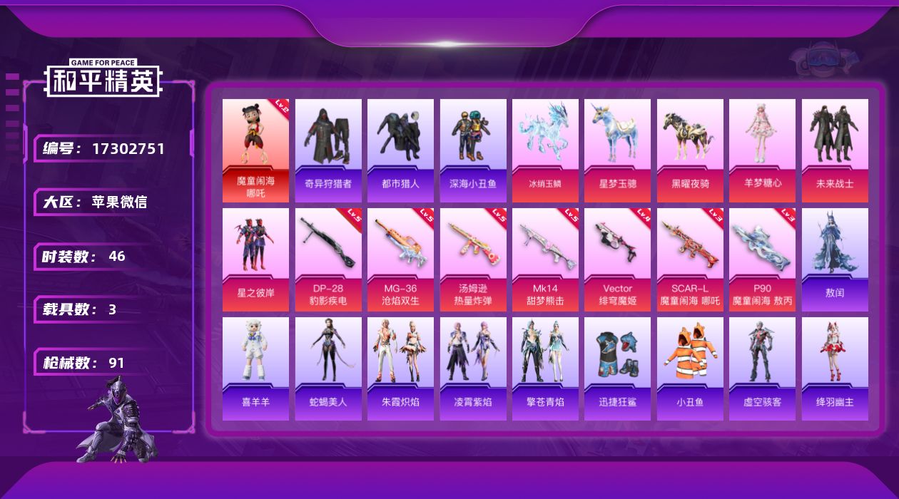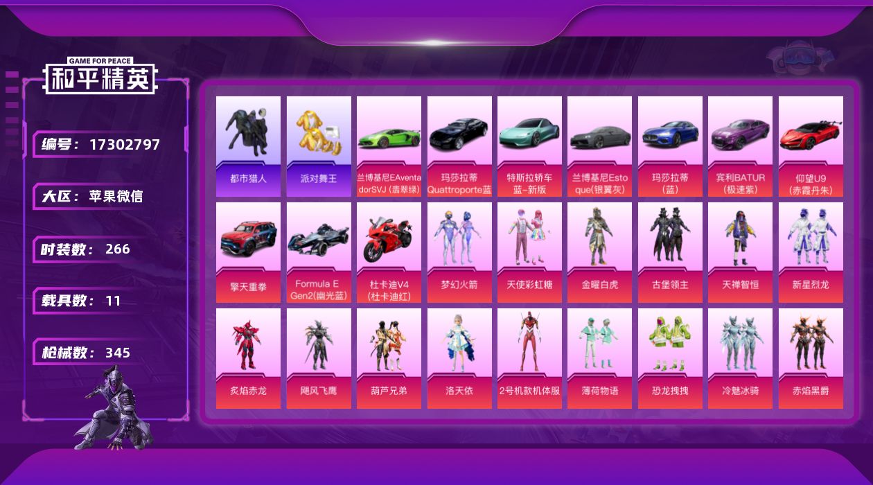 1神装-3粉装-7特效枪-3载具-4粉色飞行器-