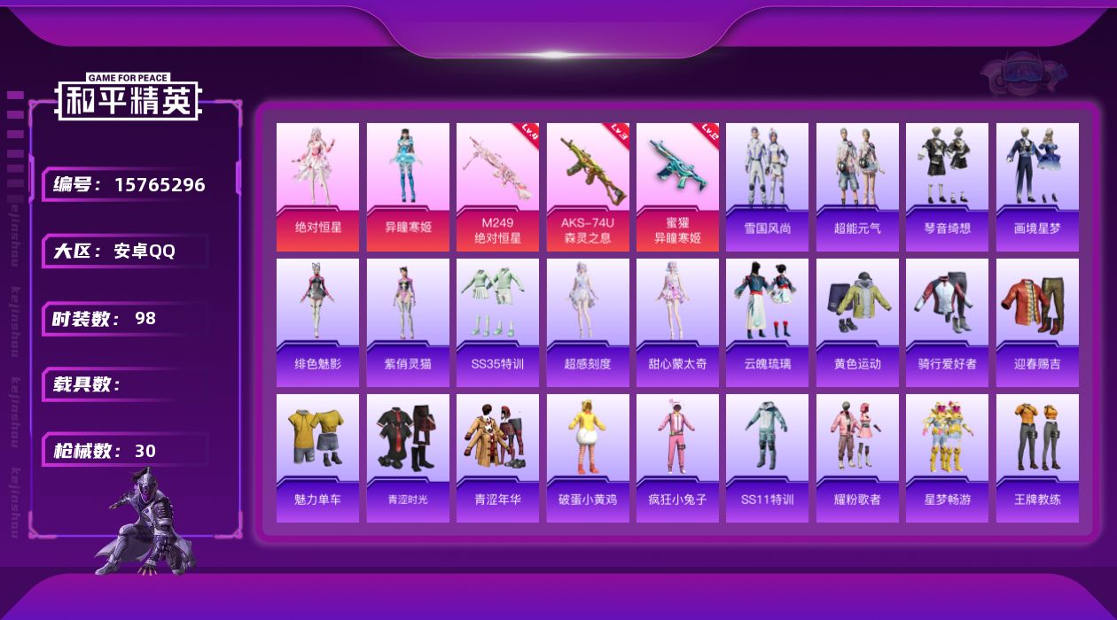 hs57919 安卓手Q-6王牌印记-2粉装-6特效枪-38683热力值-75套装-138枪皮-3卓