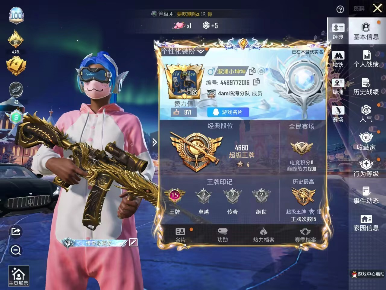 安卓 手Q-0粉装-2特效枪-0载具-0粉色飞行器-8289热力值-1王牌印记