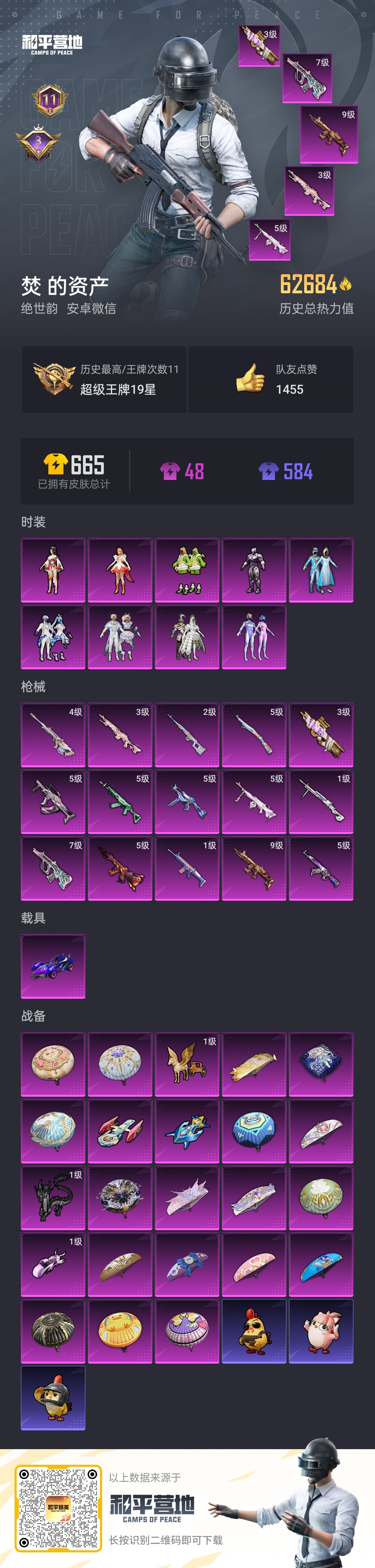 hs51299 安卓手Q-11王牌印记-3粉装-6特效枪-1载具-54900热力值-143套装-19
