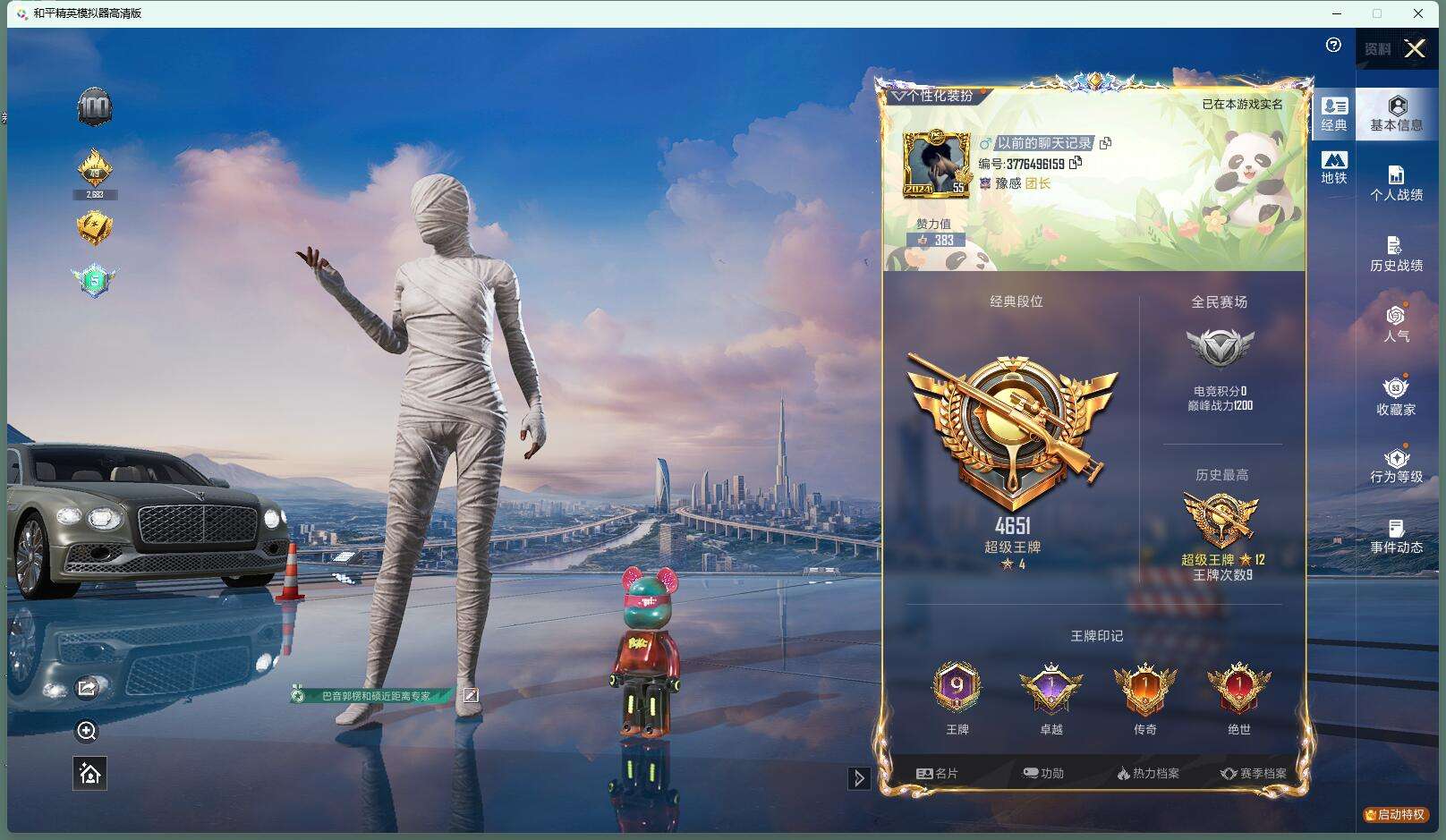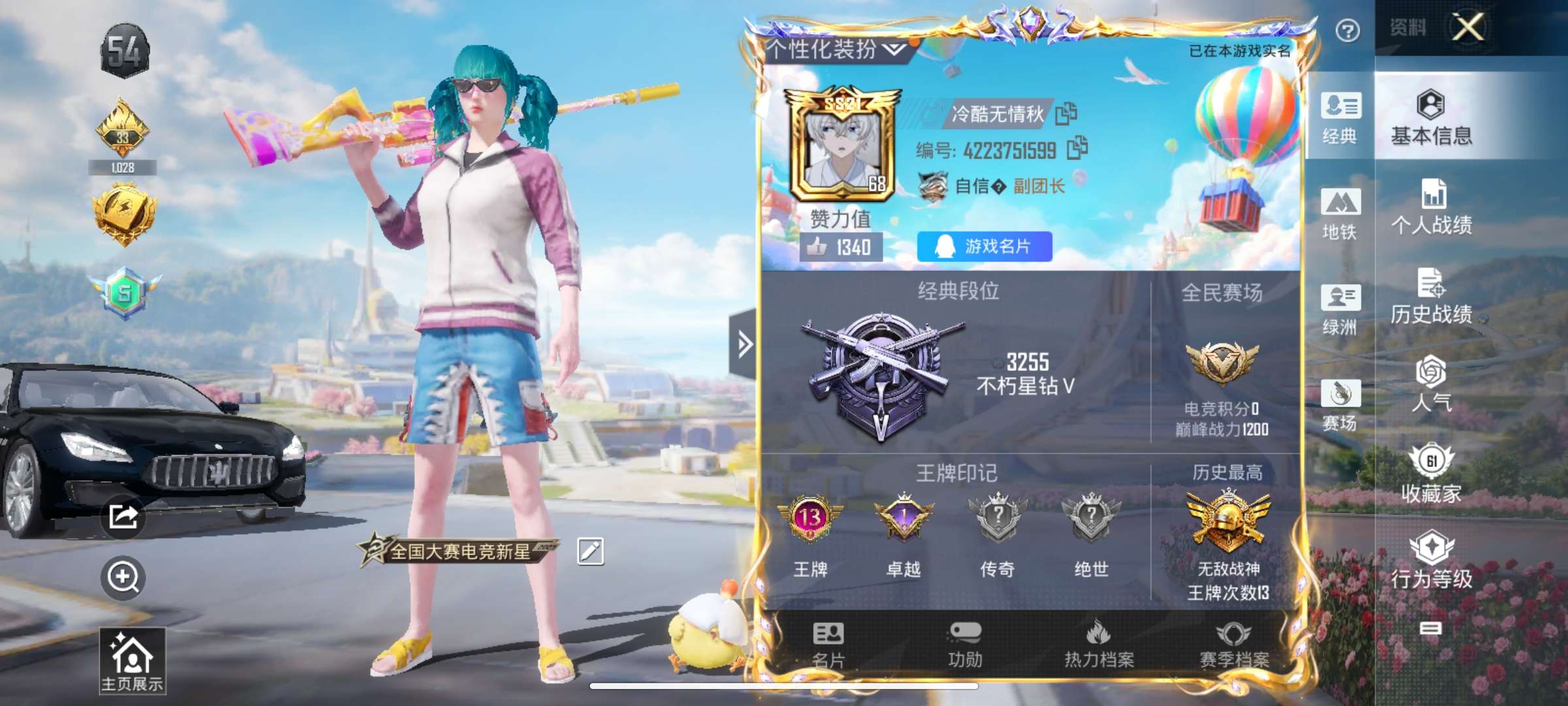特斯拉,红眼罩洛天依,小丑雨,3枪,AK差一点物资币满级,金属狂野背包,有王牌,巅峰专家,电竞新星标
