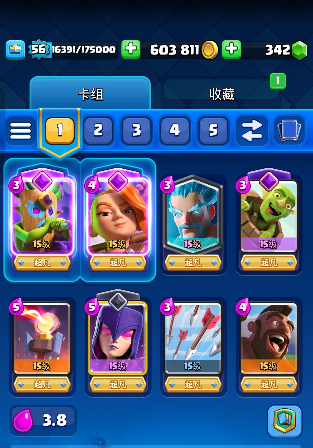 皇室战争国际服60级1.2万杯 16张15级+39张14级+17觉醒 13塔皮 136表情 很多道