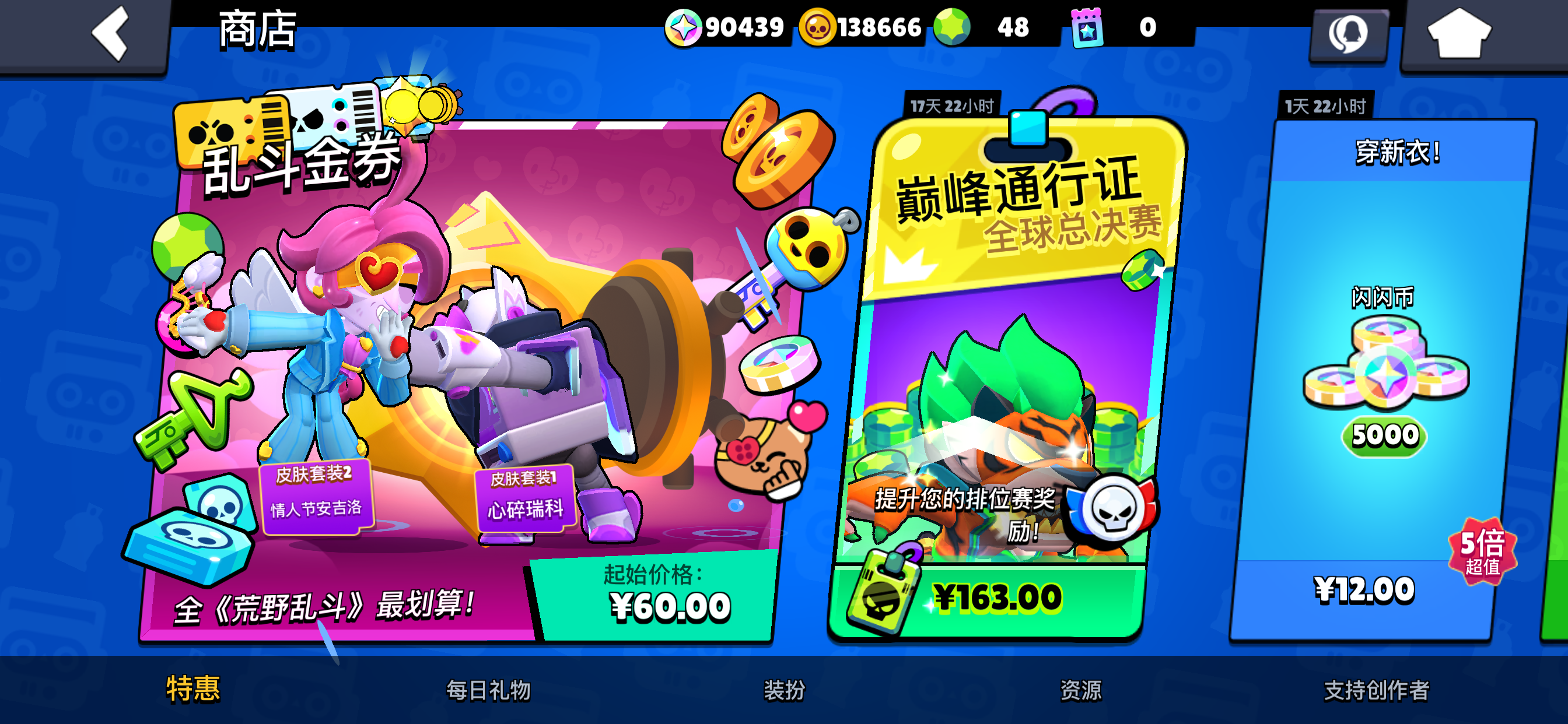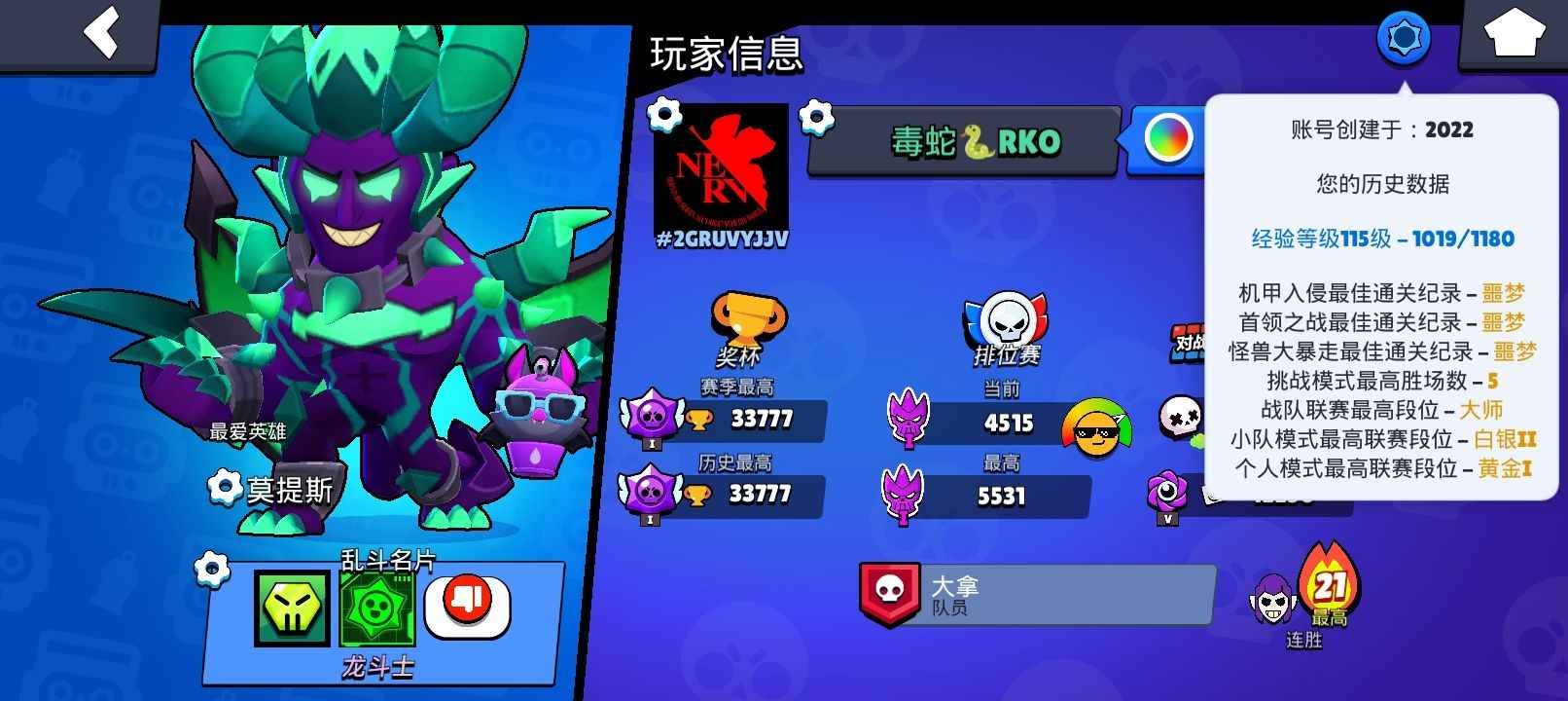 荒野乱斗国际服4.3w杯82英雄22满12超充130+皮肤雄狮公牛哥斯拉巴兹臭芝士麦克收藏刀客莫