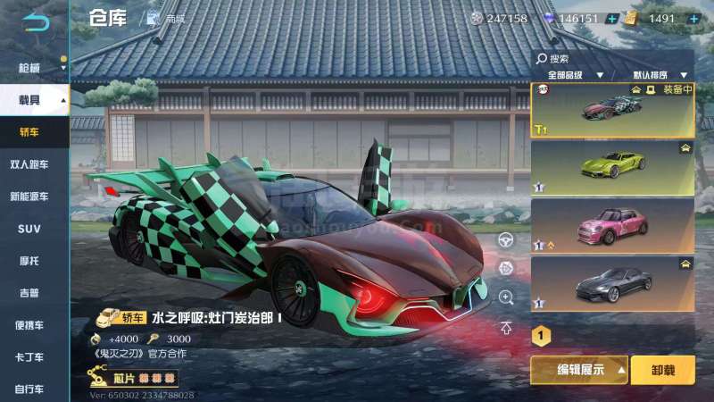 荒野行动PC版【端游】荒野行动pc电脑端手机端进击的巨人T1跑车,万向金车 七彩祥云滑板
