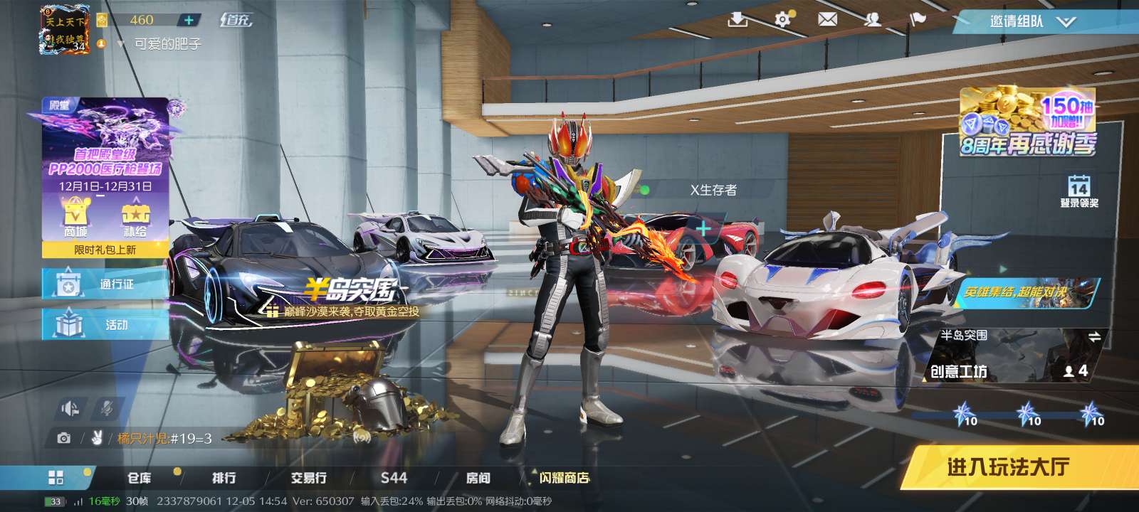 荒野行动pc电脑端手机端V6号假面骑士满级变身特效衣服,鬼灭之刃满级特效M4通行证已开