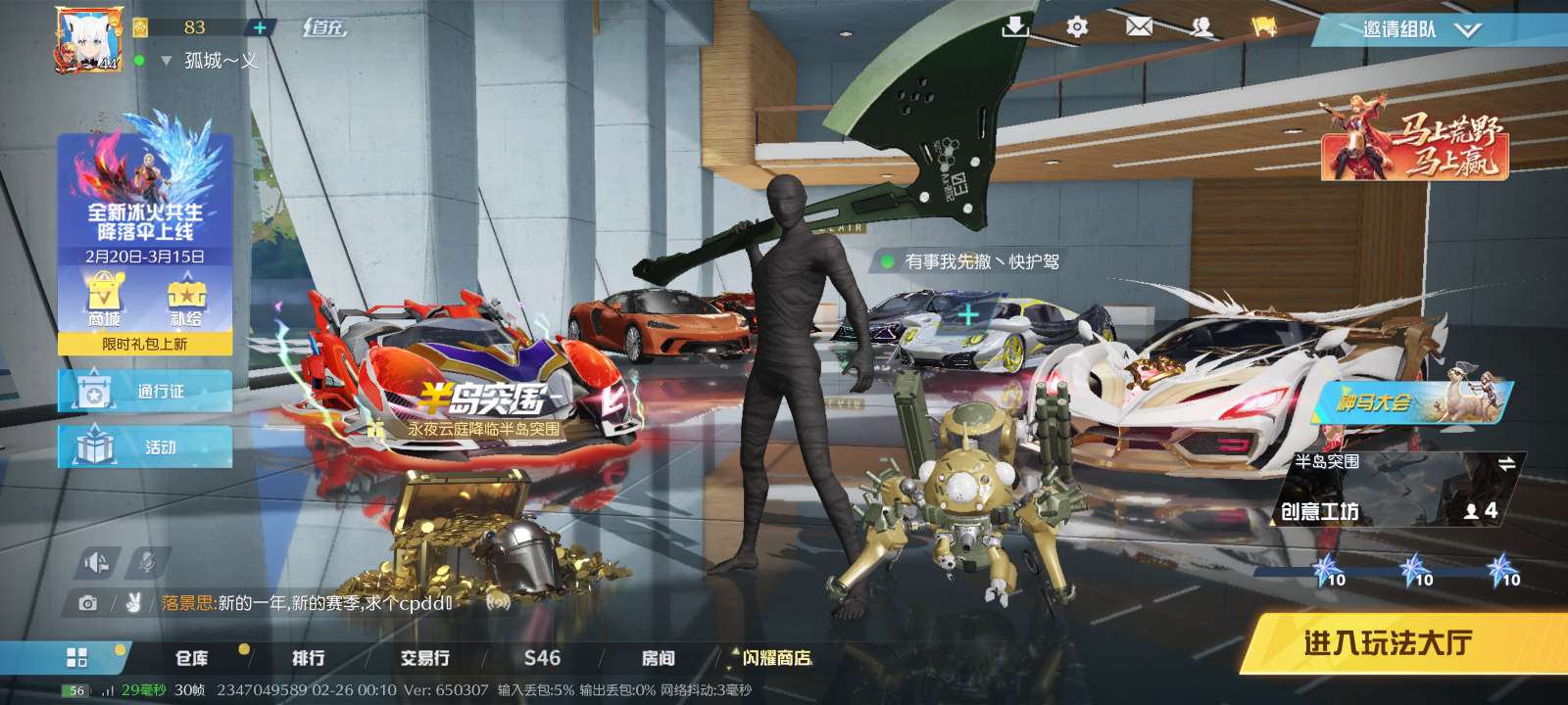 荒野行动pc电脑端手机端重生之道3级特效跑车,进击的巨人T1金车特别版 ,咒术回战满级特效衣服,七级