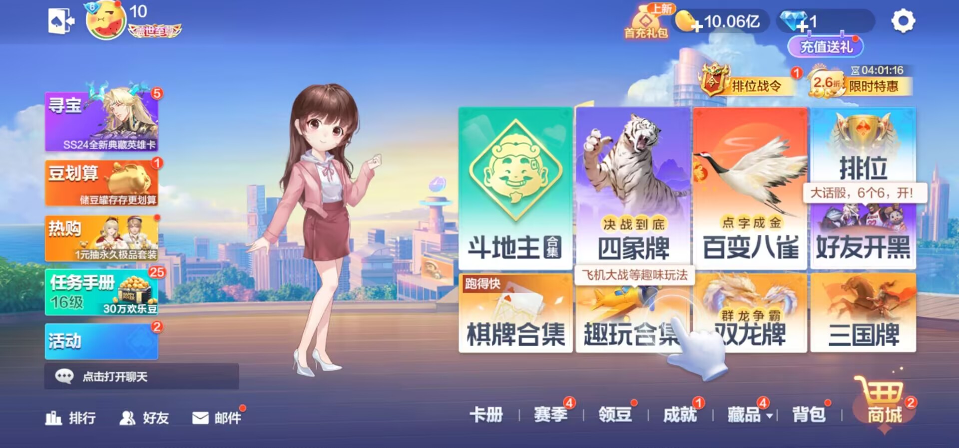 纯手打安卓Q欢乐斗地主1亿豆账号便宜出手