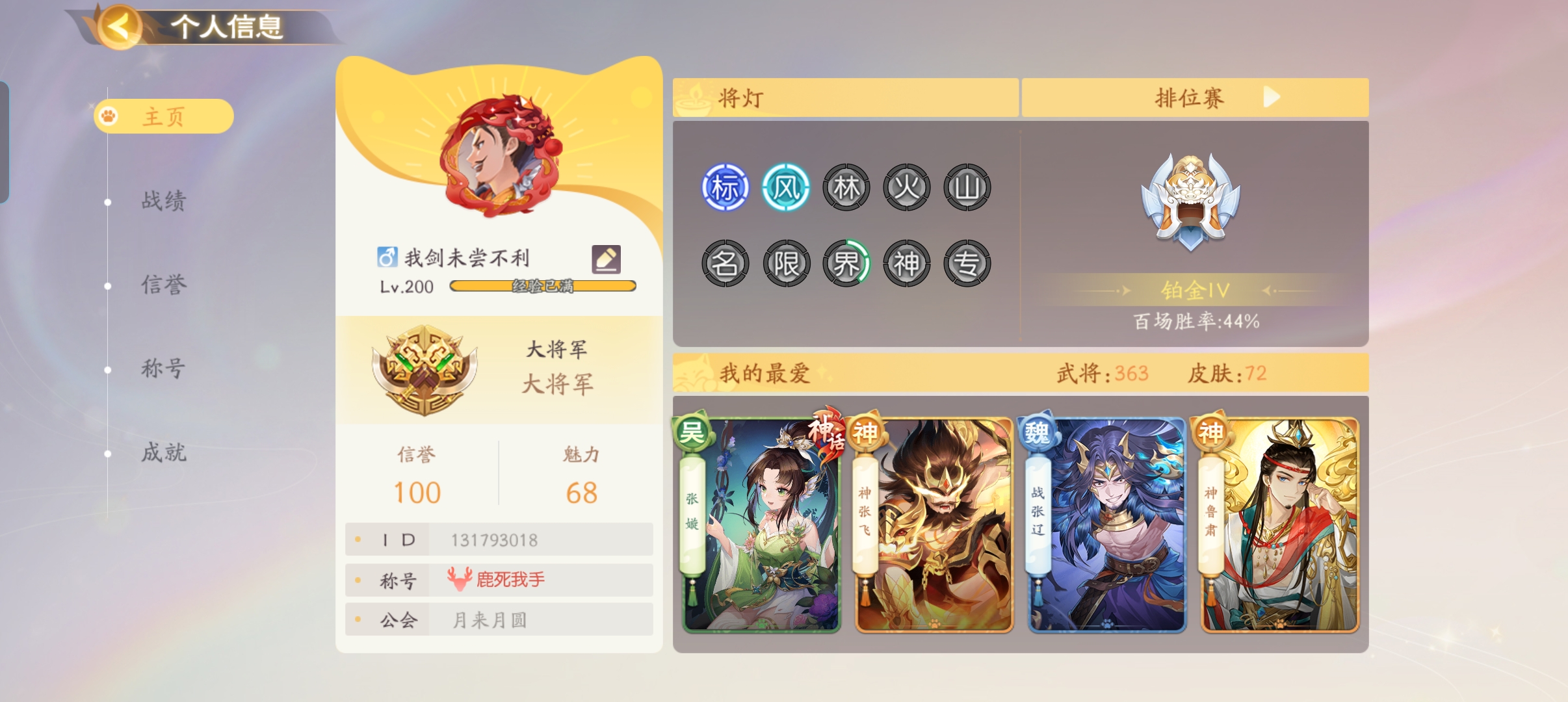 神吕布神诸葛喵关喵张刘焉卢植蒋干曹丕王异等80将,官拜上将军,2.9万+3万(月卡)合计5.9万元宝