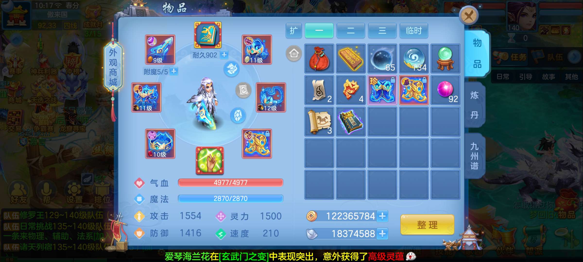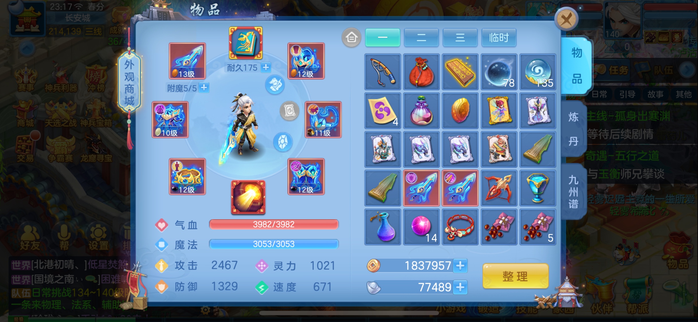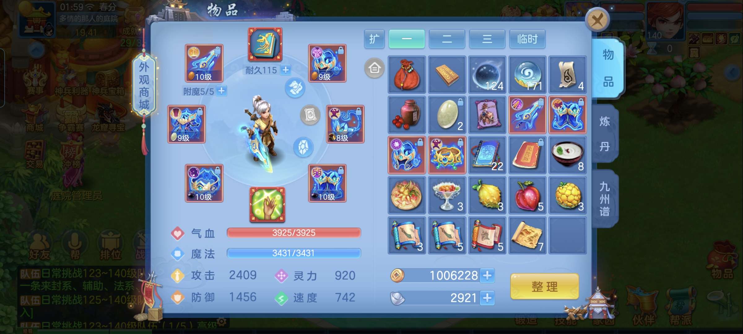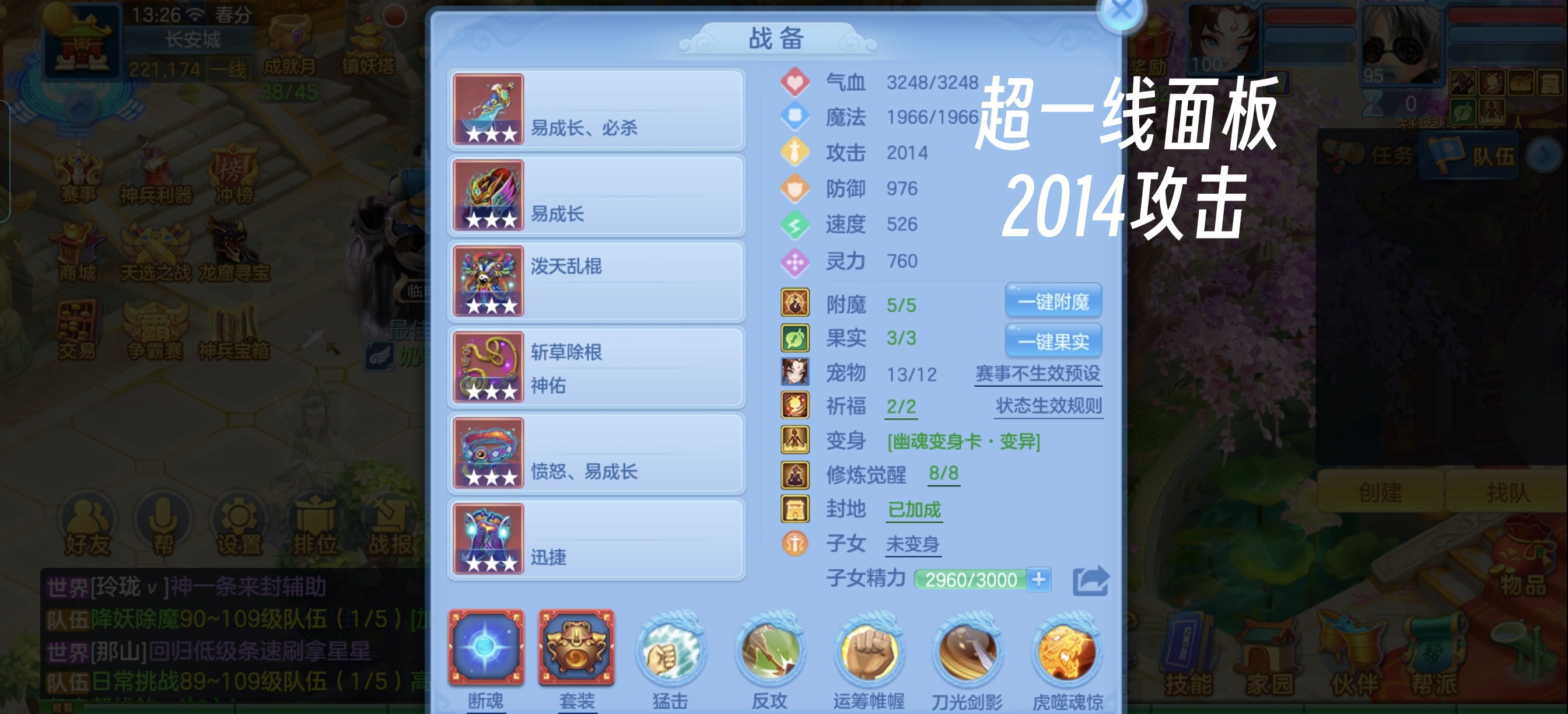 (140万兽/女)(7天换绑/邮箱不送)今年勇--14段混,初攻767回生易成长武器,嗜血迅捷鞋子,装备平均单加43左右,3内丹神(1玉龙将,2青蛇),9个满兽魂宝宝,4个专属天赋,高级坐骑