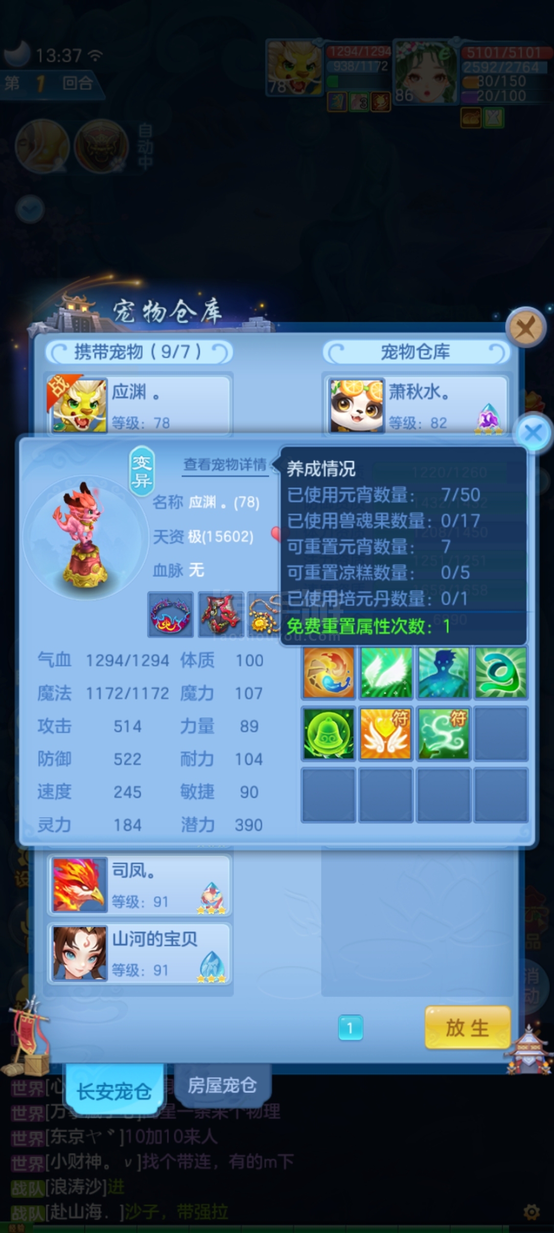 安卓官方 高级坐骑,双武器双属性 134 飞升方寸,特技齐全。宝宝多配置齐全