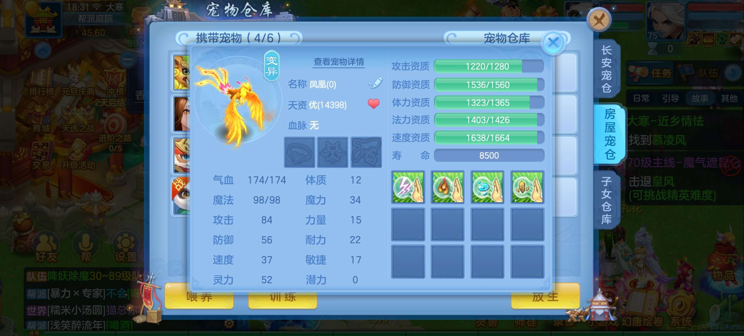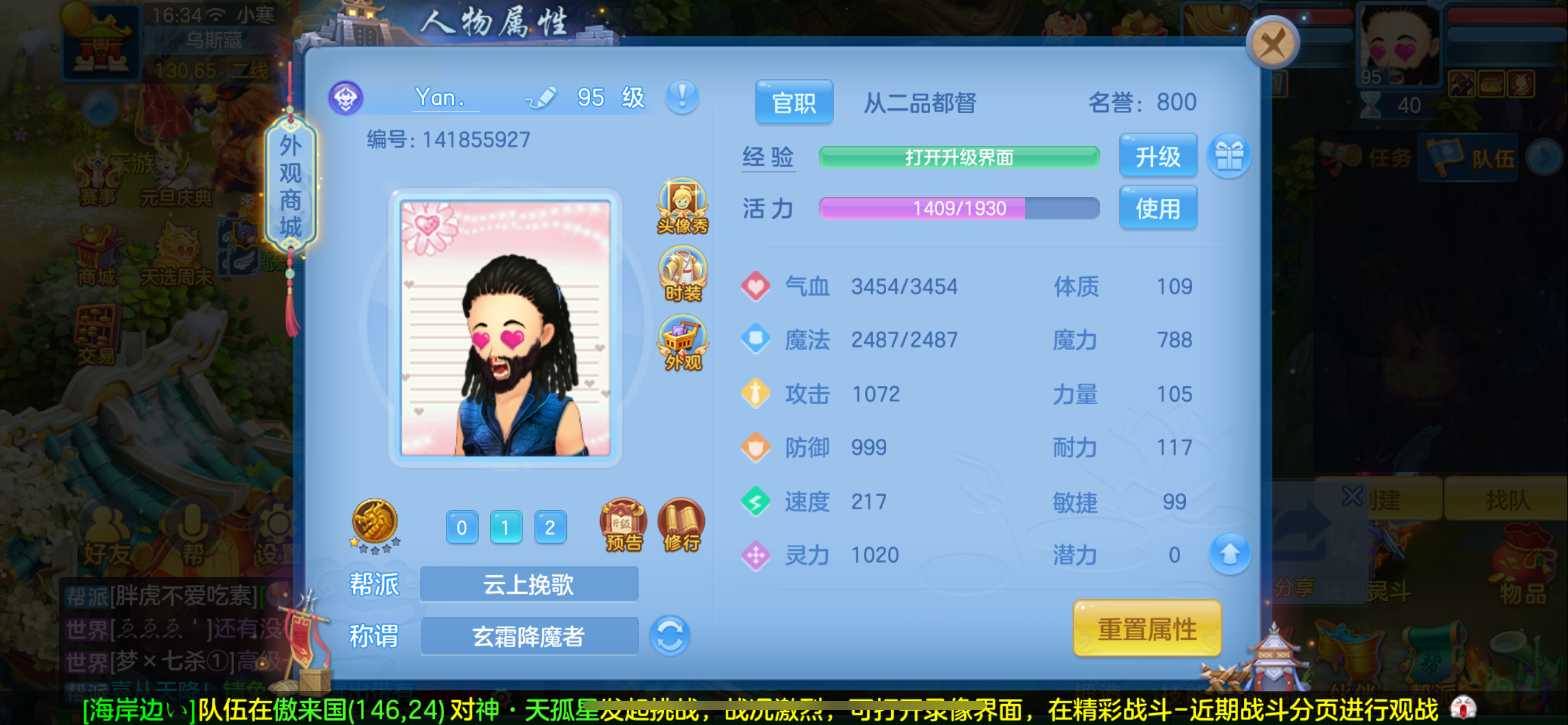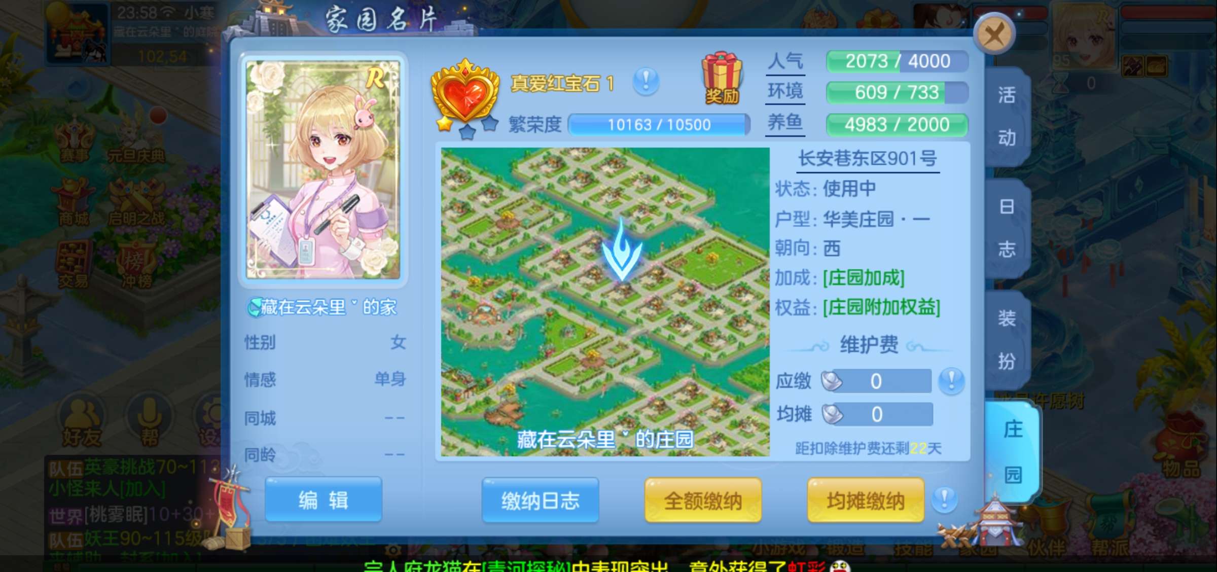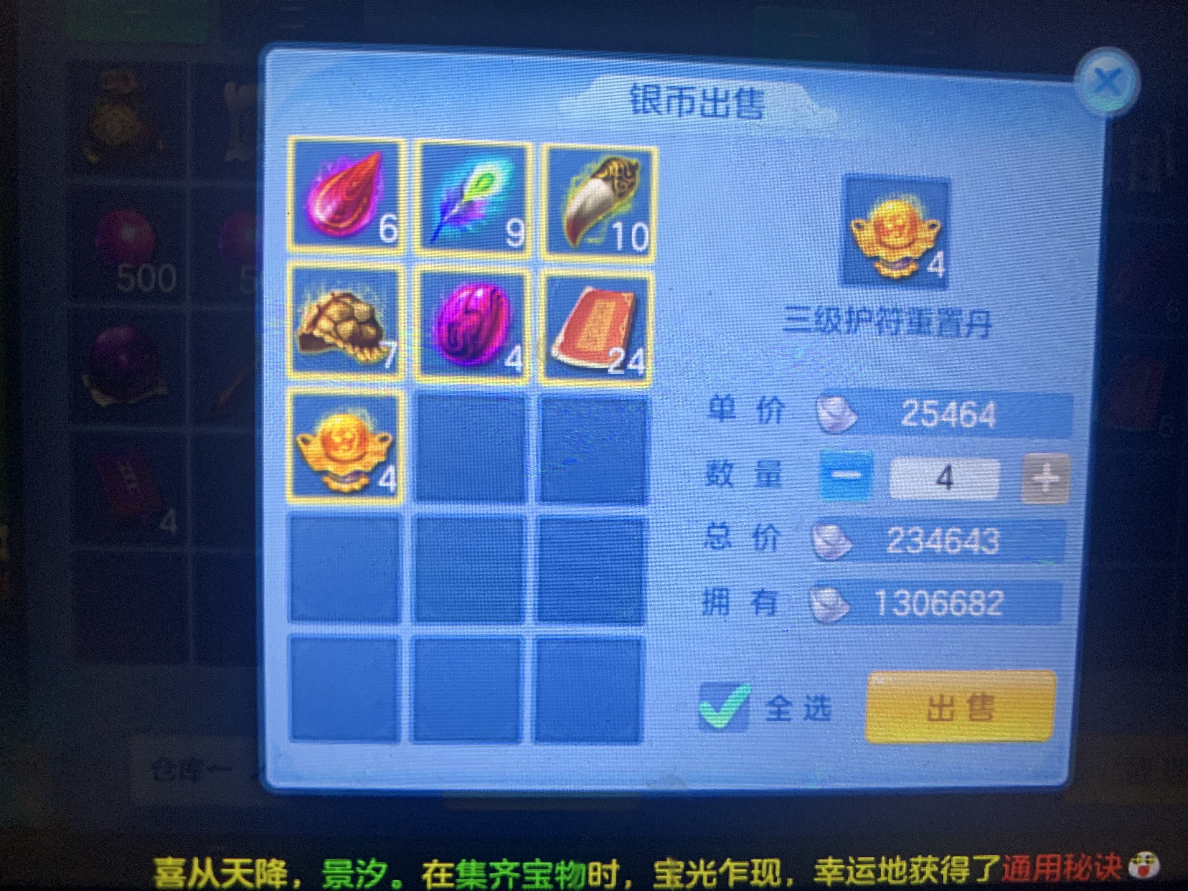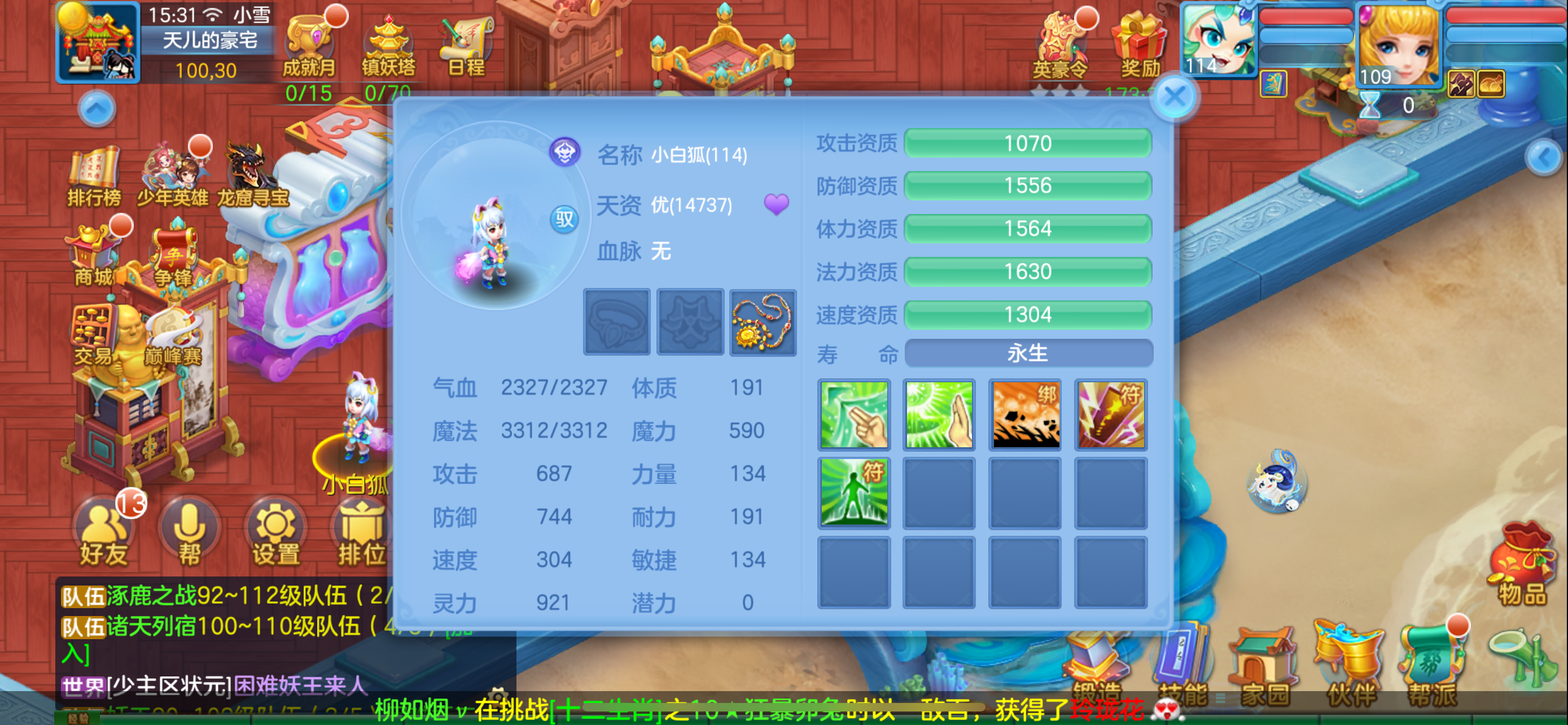 惊涛109齐全无量满配 5神3内丹3珍兽第四个内丹马上出 两个高级坐骑 3740成就海景房3子女