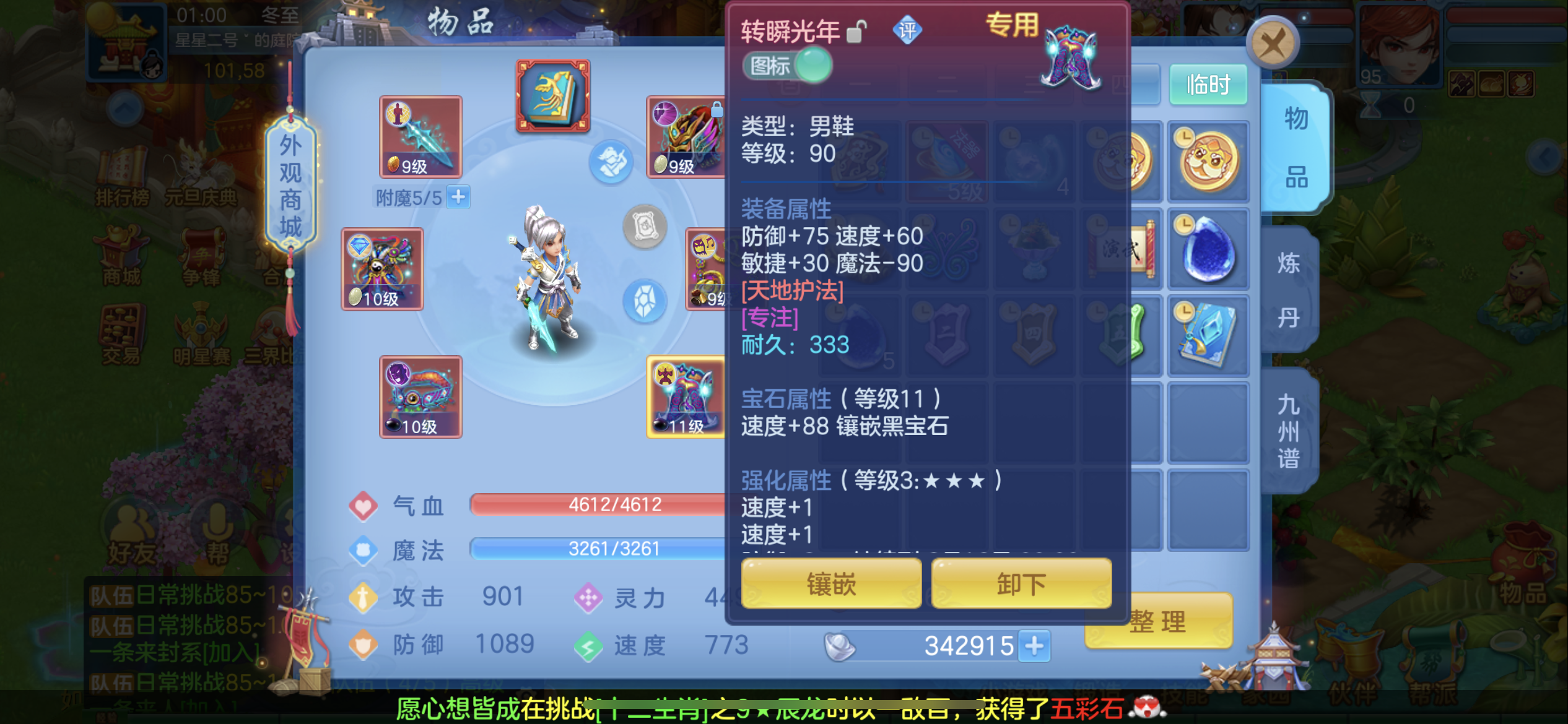 95男方寸,三神。双内丹强化,带高级坐骑,摊位全开