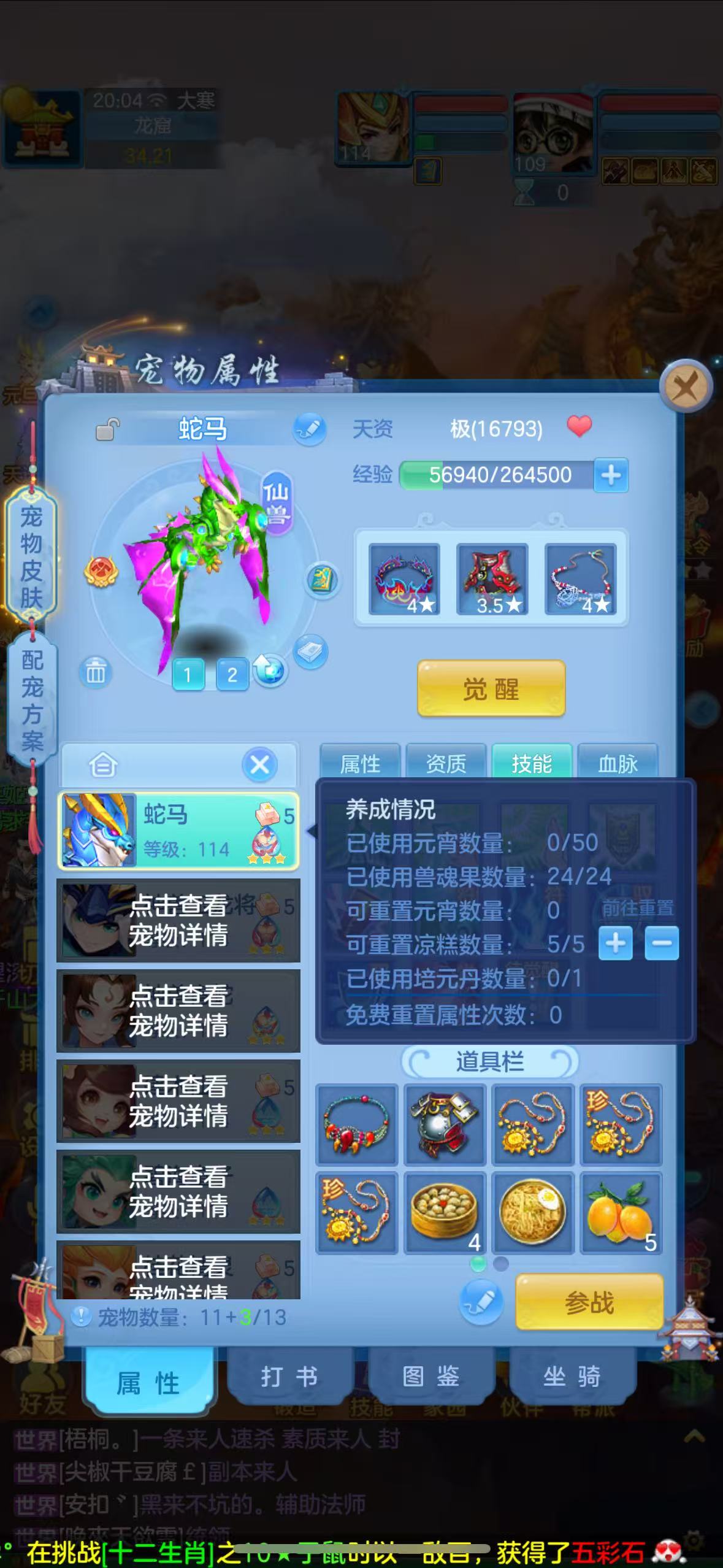 【不议价】109普陀16个满兽魂,6个专属血脉。13满段,1强化玉龙,1法蛇。上手就能玩2980邮箱,无双重。