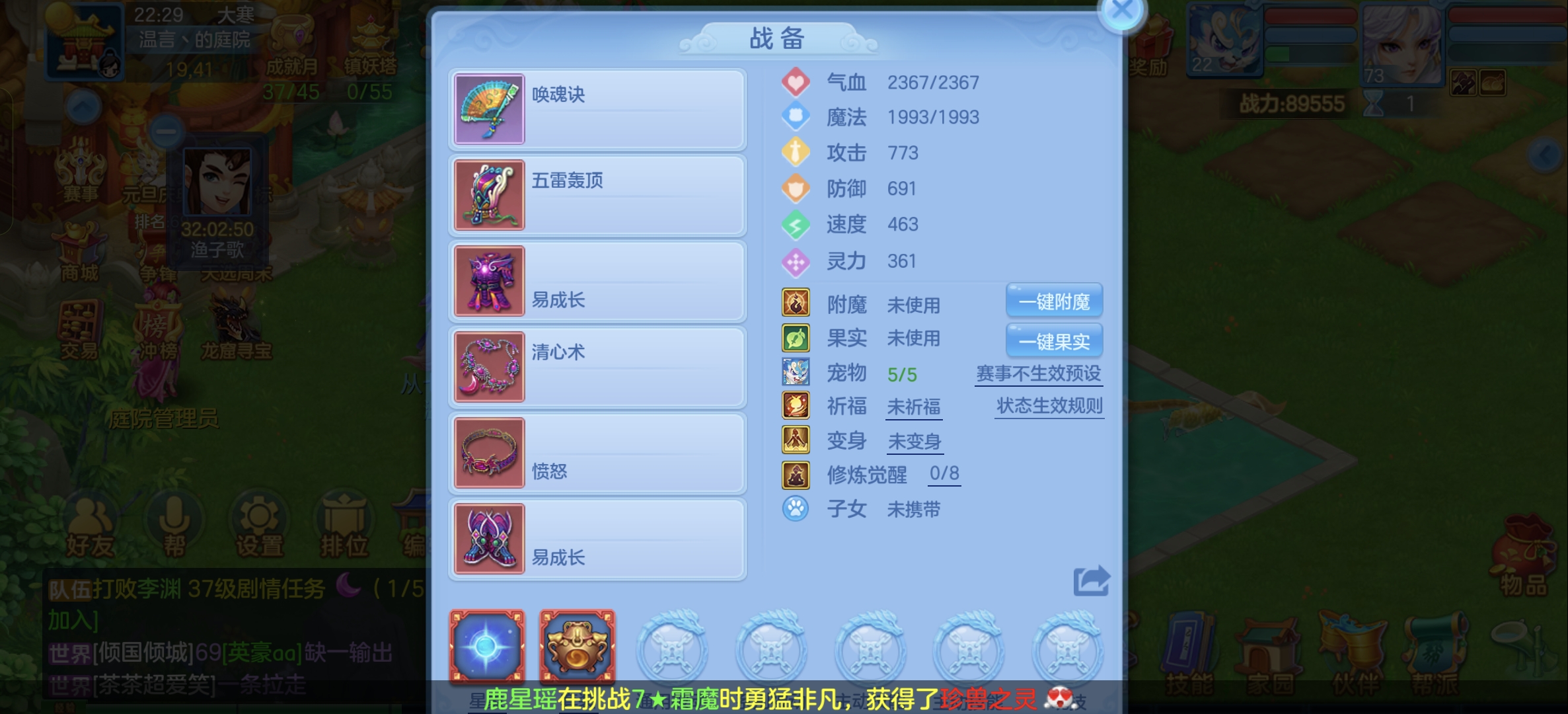 结束处理53个神兽蛋,原生灵犀日常装备宝宝齐全。