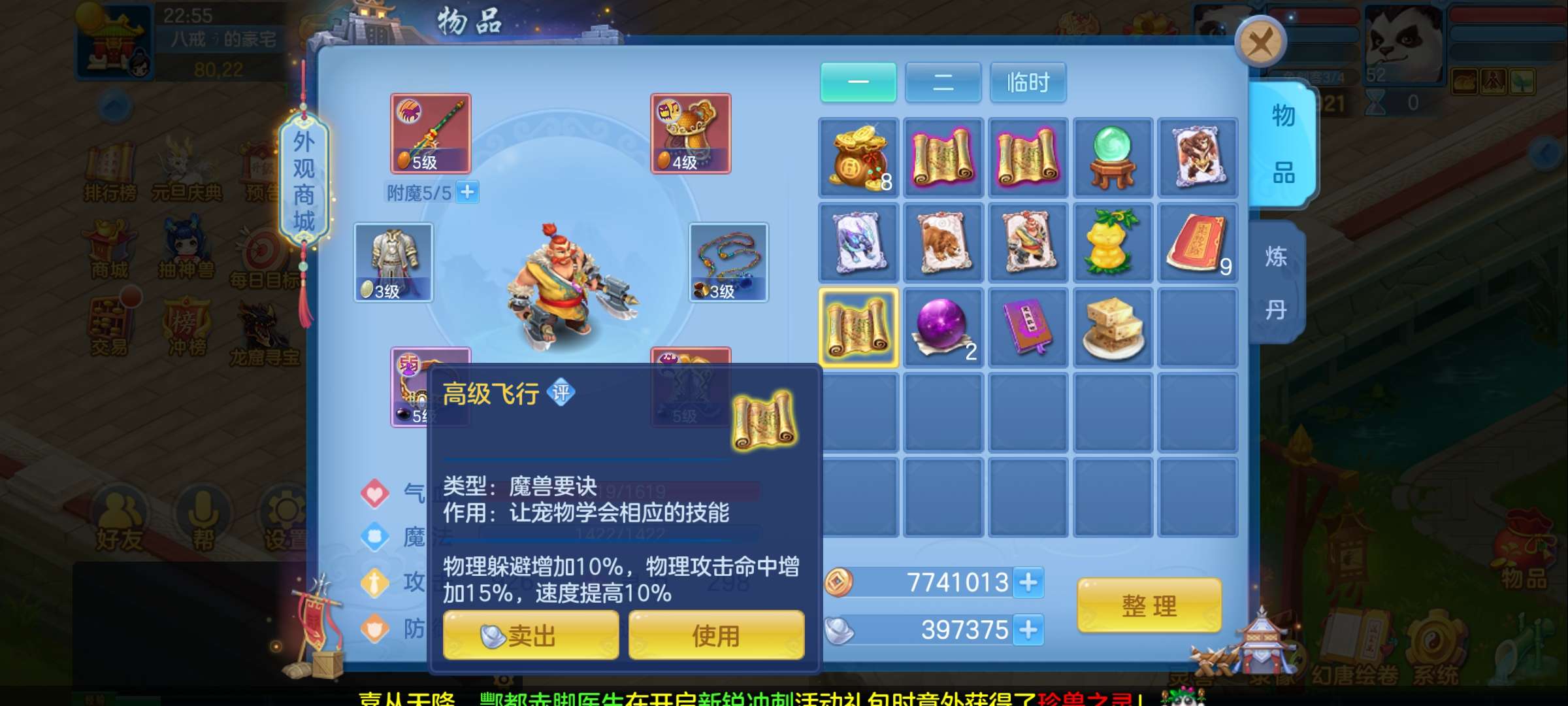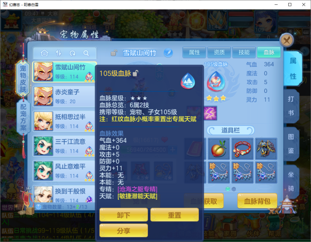 飞升129龙宫,高级坐骑,雨师皮肤,满技能宠物齐全