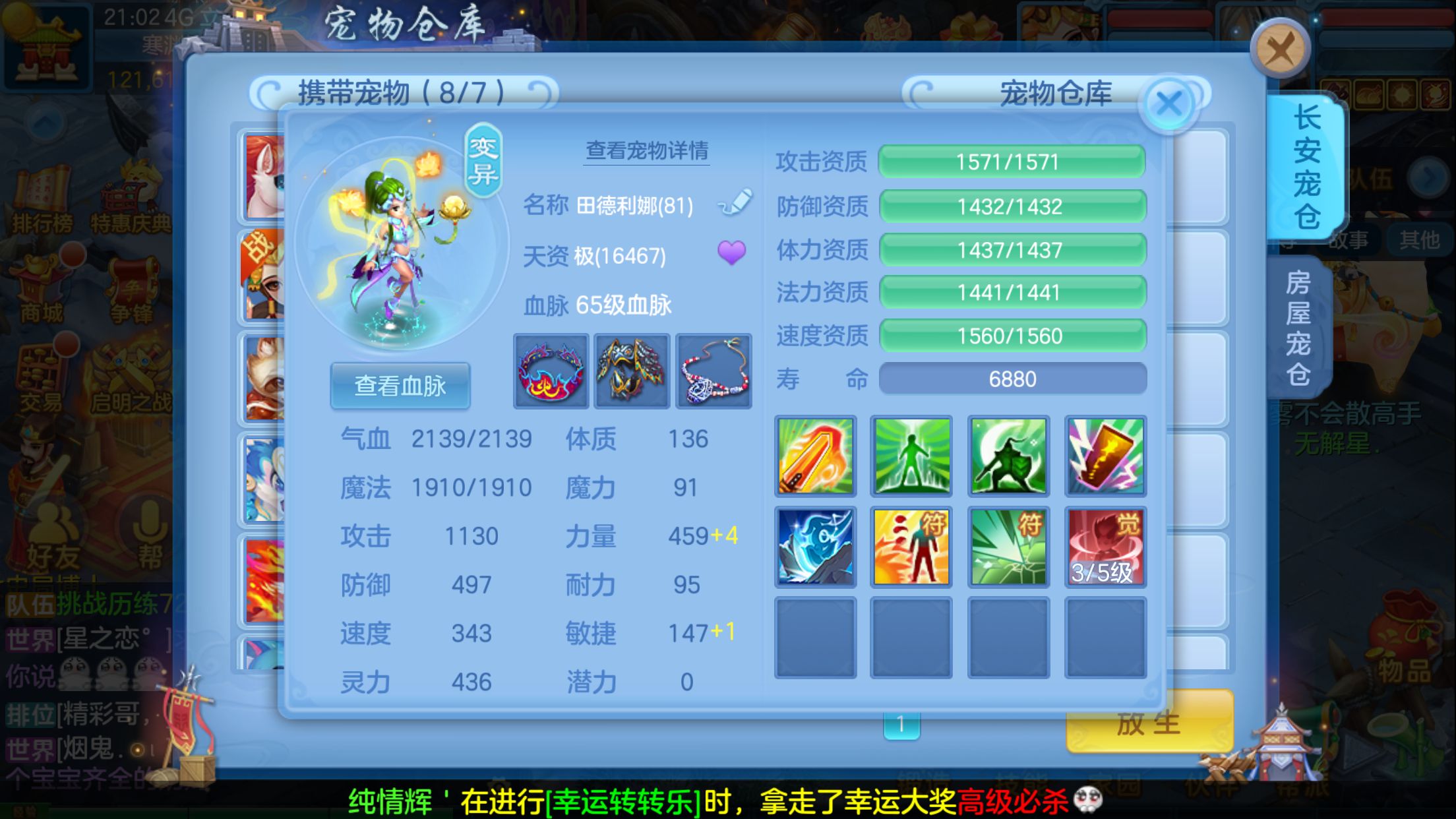 幻唐志:逍遥外传(神武4)【安卓官方】天行健,神兽马,5技能大波浣熊,特技齐全,月卡时装