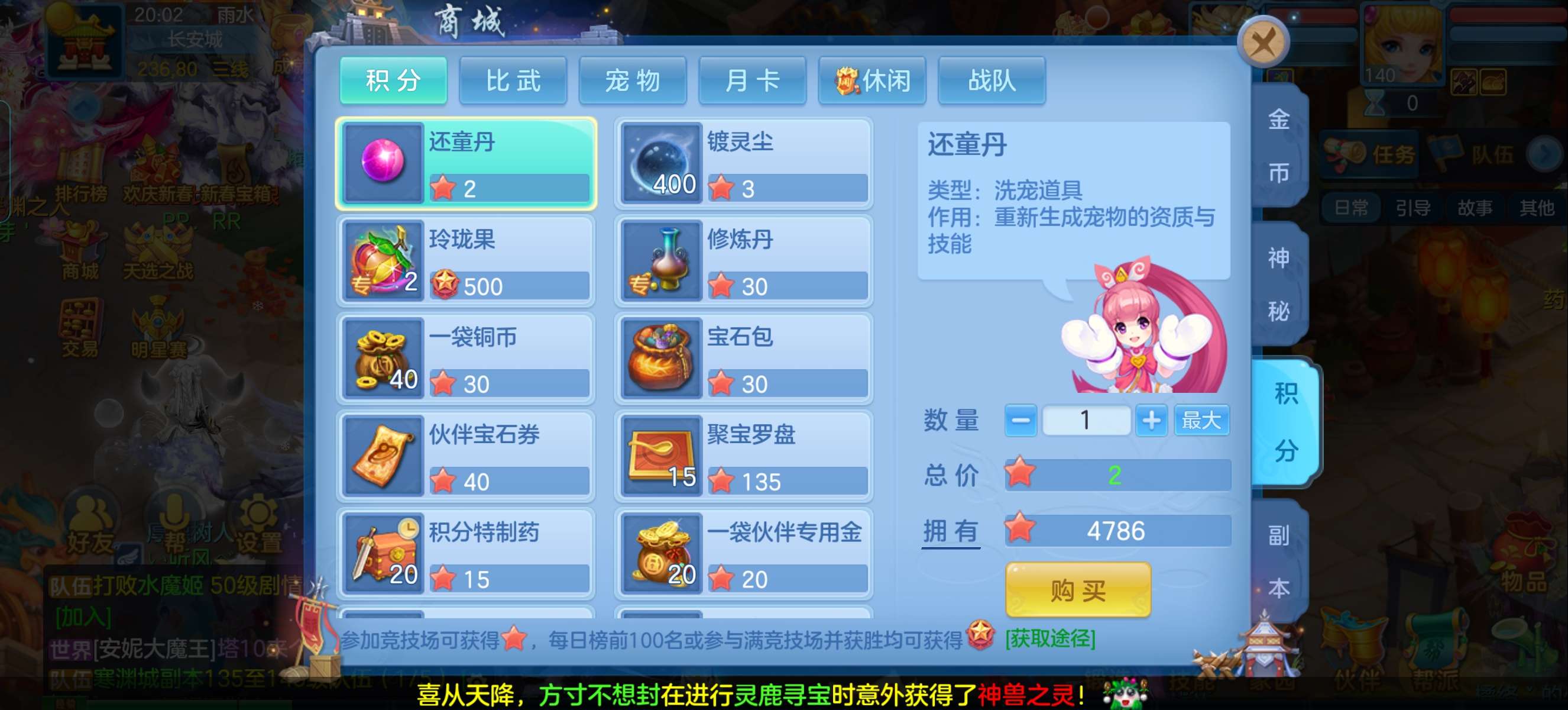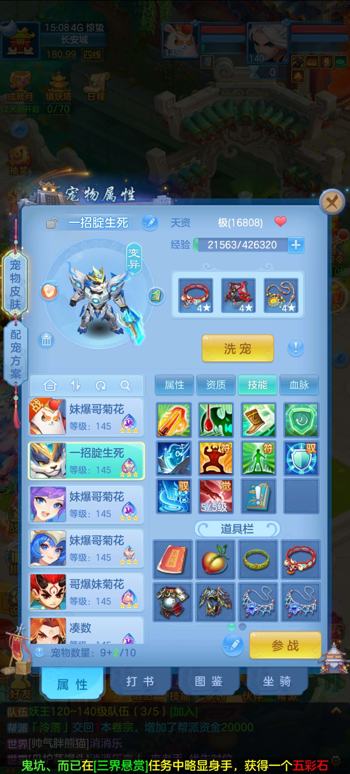 飞升140 648坐骑 宠物基本都带皮肤 修差一个宝宝全满 两套属性 神武币和金币都不少有存货