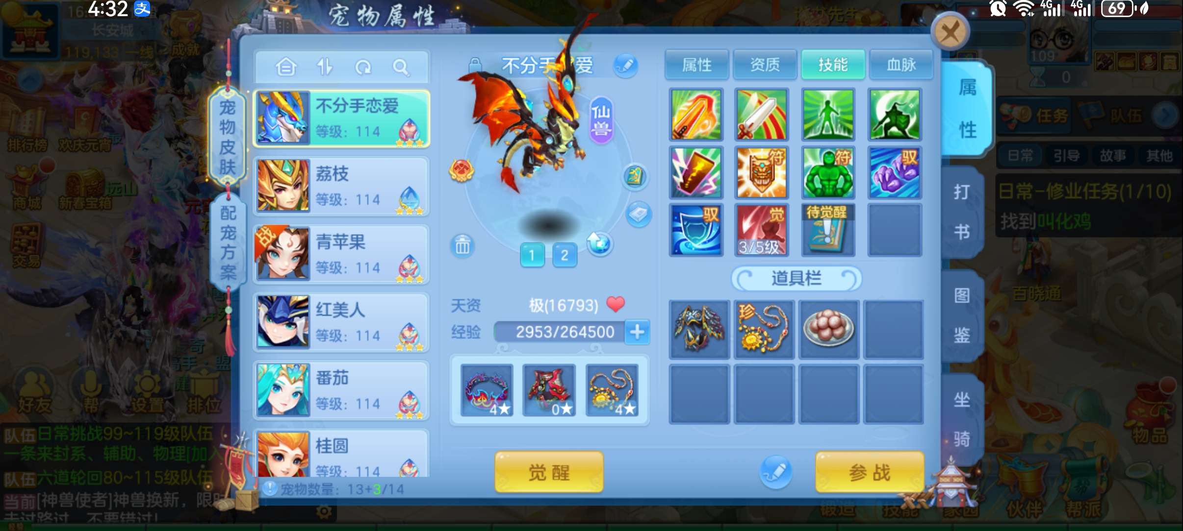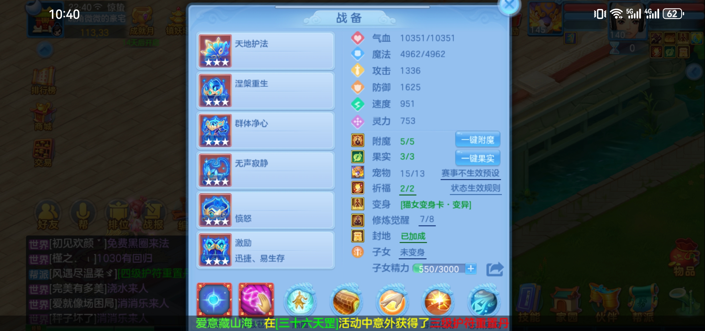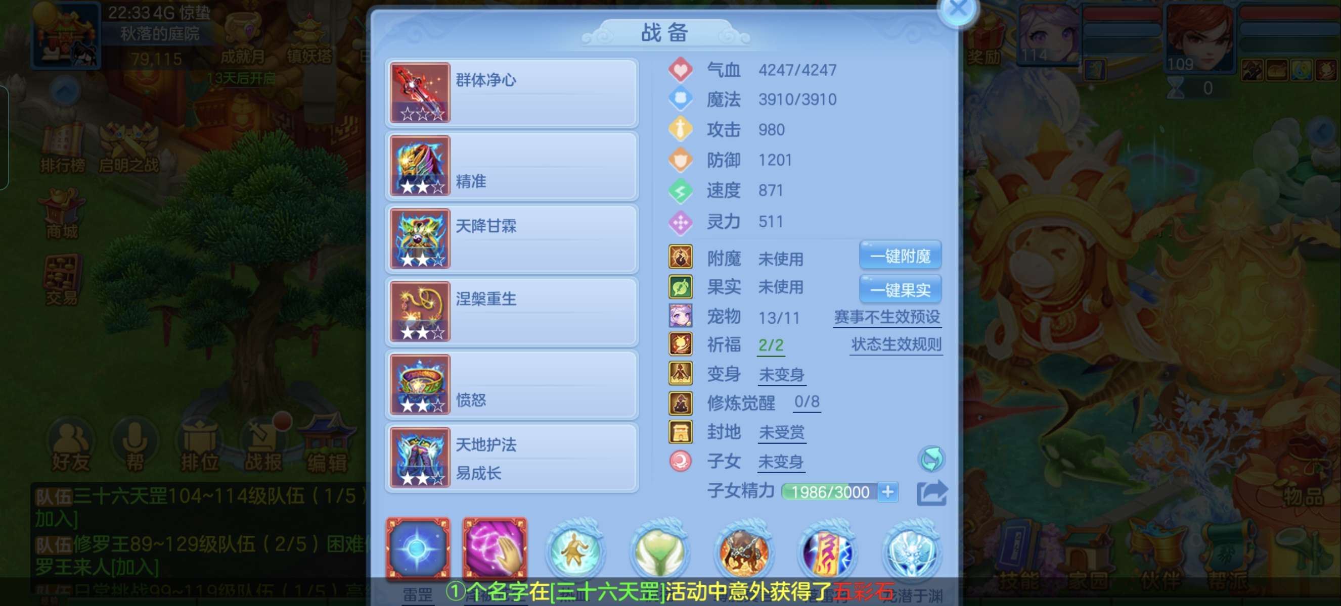 (一年换绑)(140天宫)天下无双/有双重/1件12 5件11-高级坐骑 4个6技能 4专属血脉 10红7黄血脉