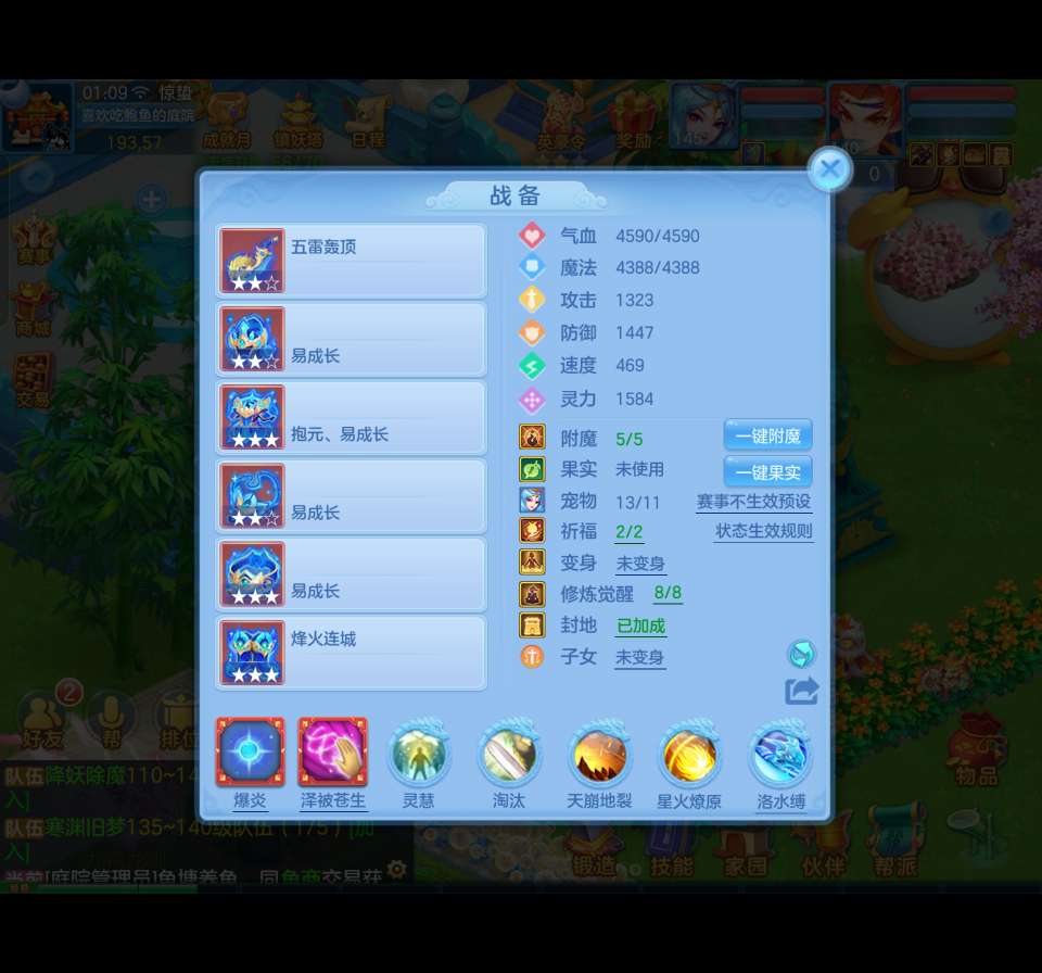 (140冥月天/男)(7天换绑)万木争春-4套属性,4件14段1星,1件14段,15个专属血脉,坐骑衣橱6套,有庄园