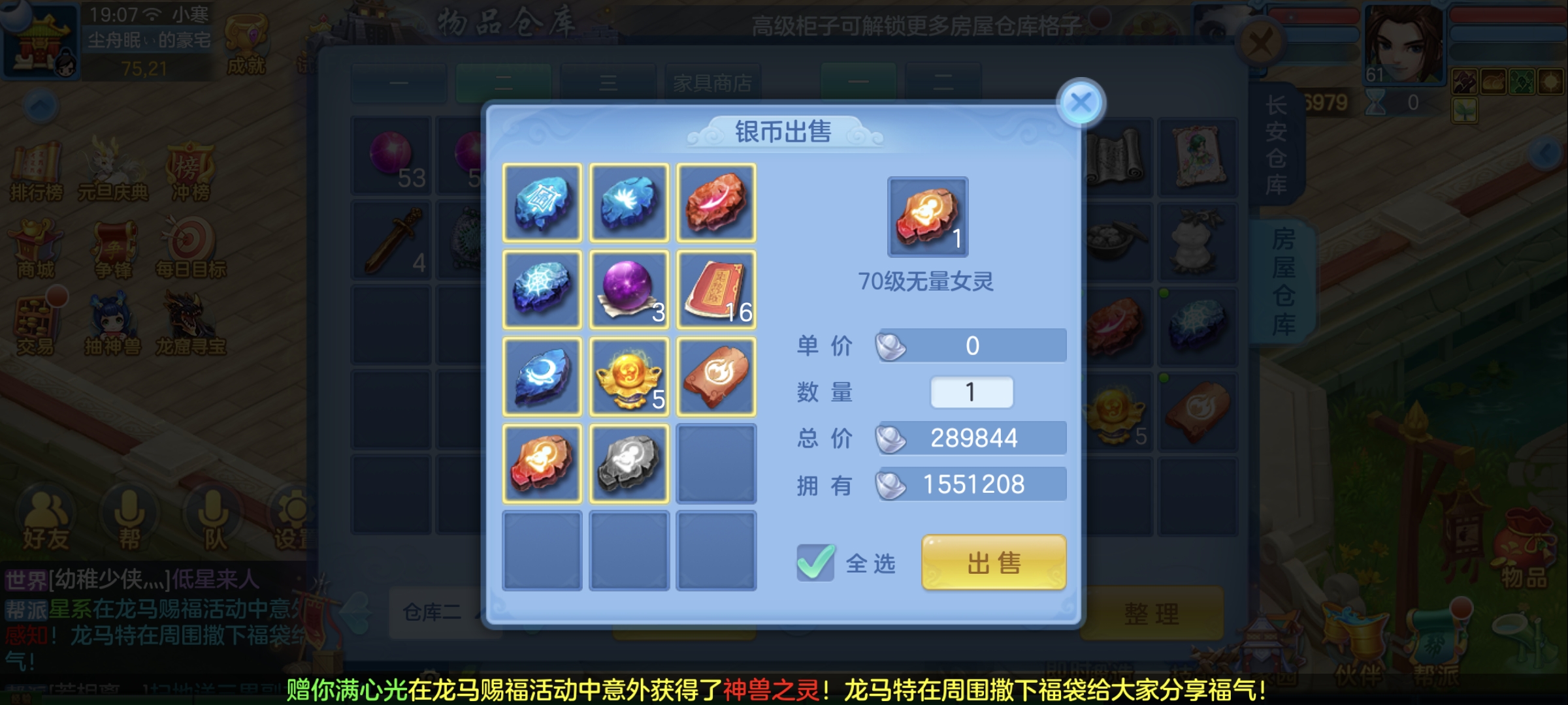 (140龙宫/男)天下无双/邮箱不送/一年换绑★无双重★6件12段,特技装,11个6多特殊5,12红13黄7专属血脉,高级坐骑2染+金拍庄园,仓库还有资源,神兽内丹碎片38,3233成就