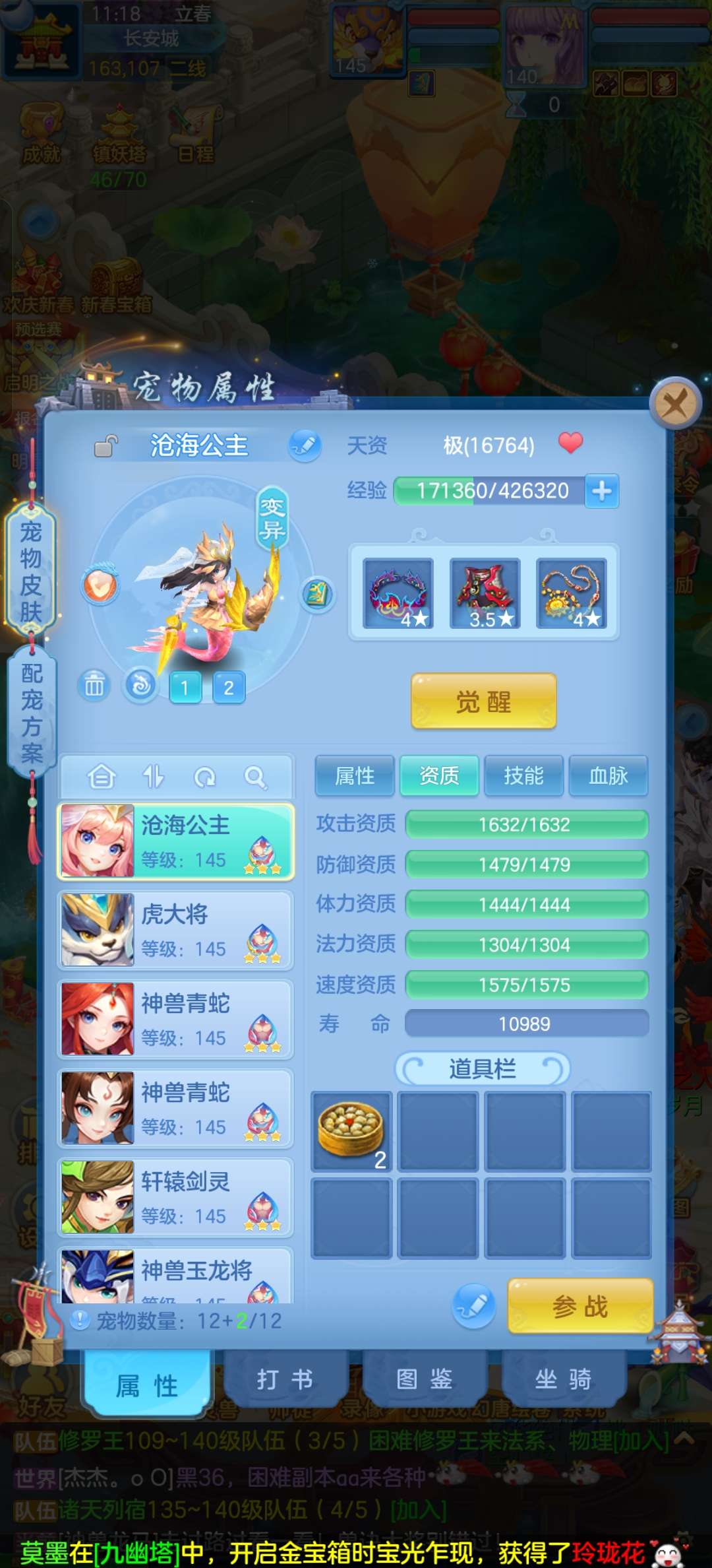 (140女龙宫)天下无双/2980/有双重/2件13-2件12-1件10-一件11-2内丹蛇(1强化)3616成就 多个6技能