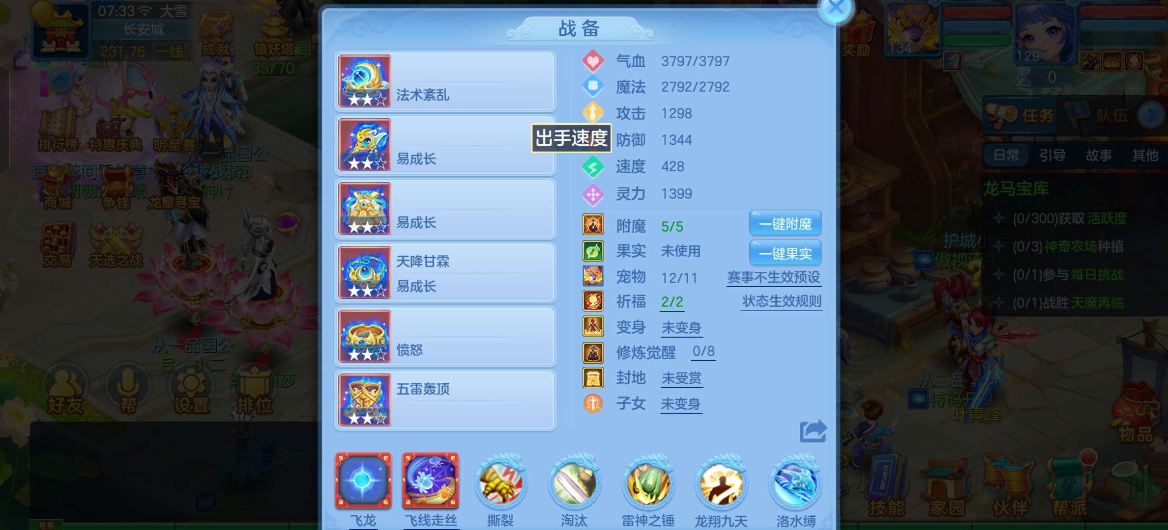 今年勇109女普陀,2仙兽2强化,13段,可转法封,激励易成长衣服,愤怒易成长腰带,疾速易成长帽子,笑里易成长项链。2只内丹强化神,迅捷慈航鞋子,26只满兽魂宝宝,14个专属天赋,庄园,2980邮箱,无双重