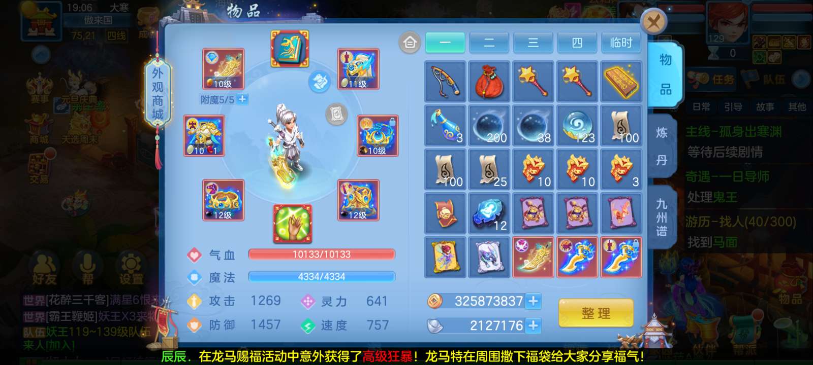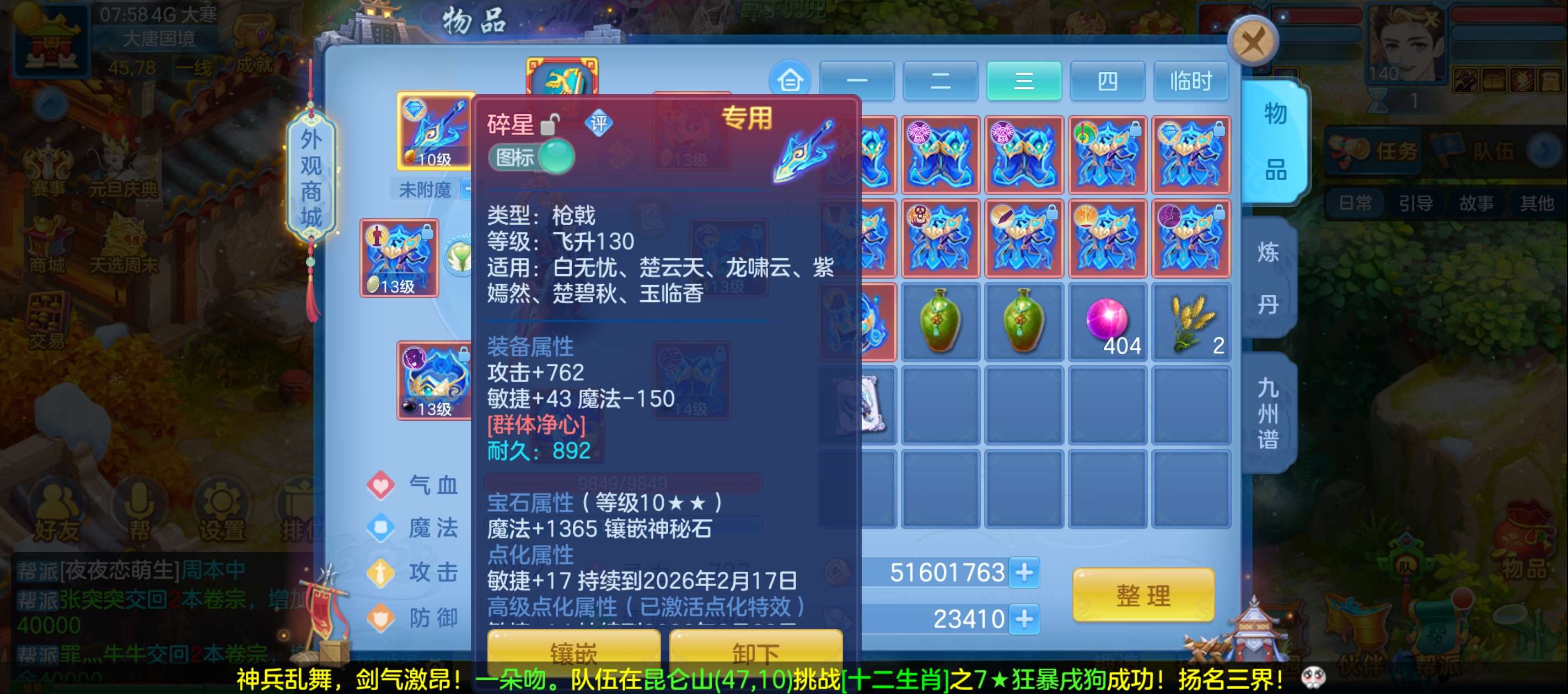 (140龙宫/男)天下无双/邮箱不送/一年换绑★无双重★6件12段,特技装,11个6多特殊5,12红13黄7专属血脉,高级坐骑2染+金拍庄园,仓库还有资源,神兽内丹碎片38,3233成就