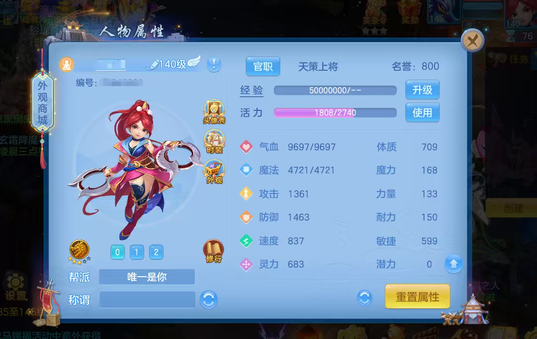 (一年换绑)(140天宫)天下无双/有双重/1件12 5件11-高级坐骑 4个6技能 4专属血脉 10红7黄血脉