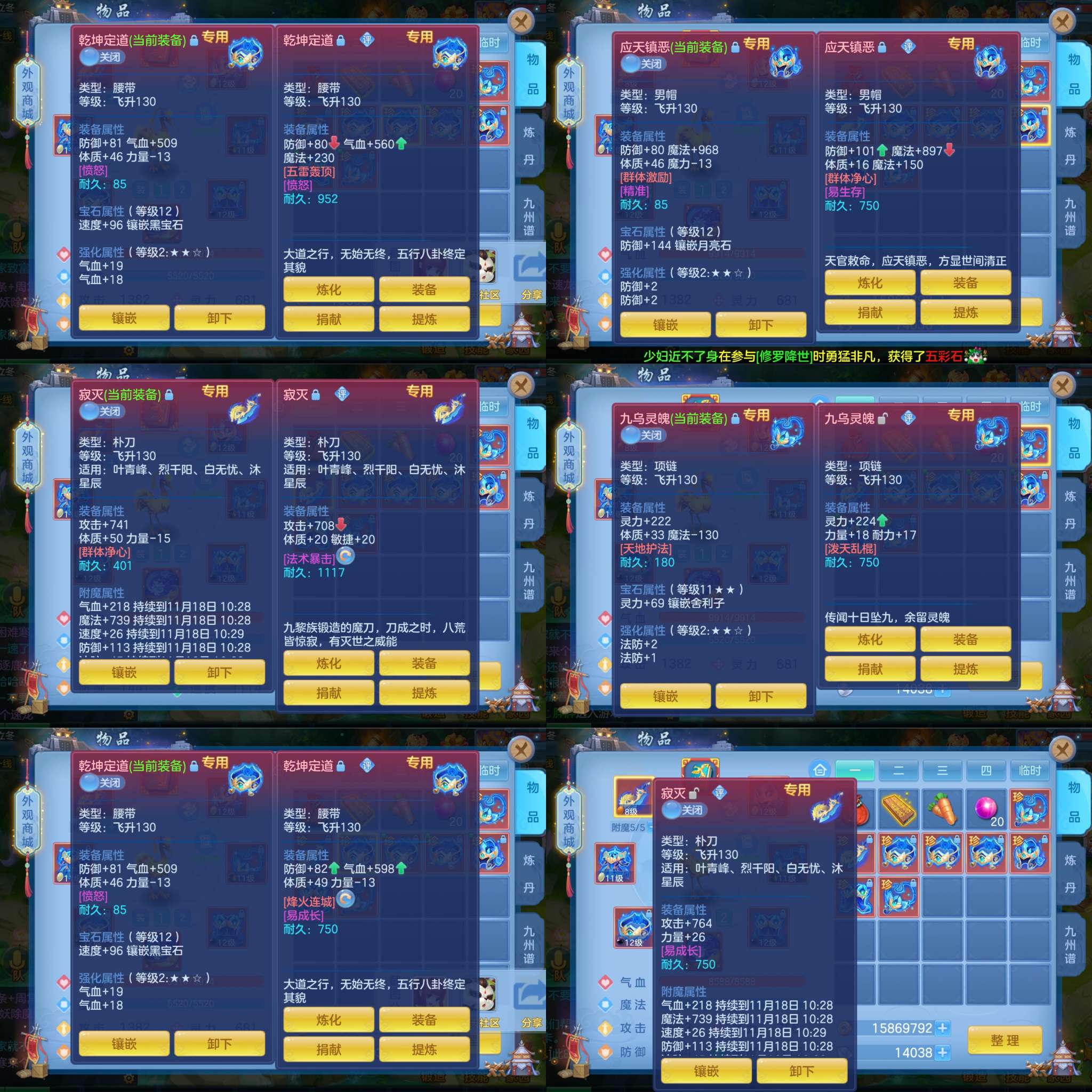 (140魔王/女)花好月圆/邮箱不送/一年换绑★无双重★3件12段1件11段2件10段,易成长,5个6技能,3珍兽,有个满魂钧邪,带800万银子,有15000积分,仓库还有很多高书,元宵,变身卡,双倍充值也还有,2626成就