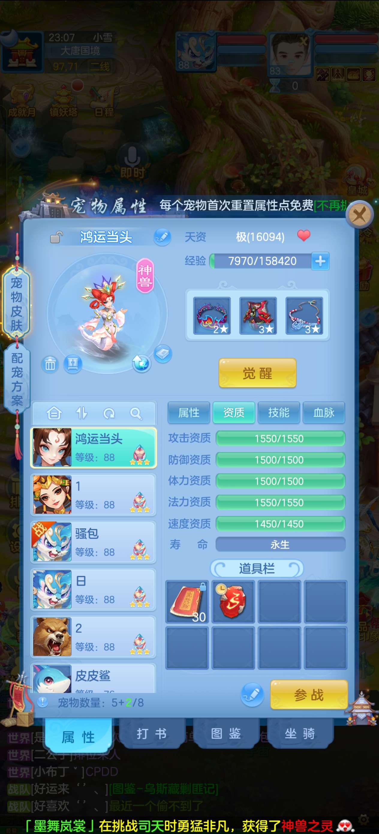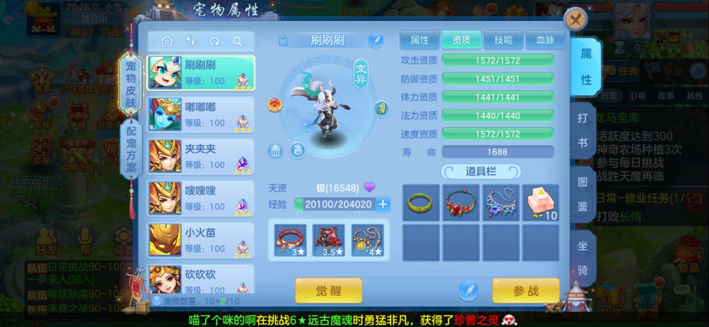 109普陀16个满兽魂,6个专属血脉。13满段,1强化玉龙,1法蛇。上手就能玩2980邮箱,无双重。