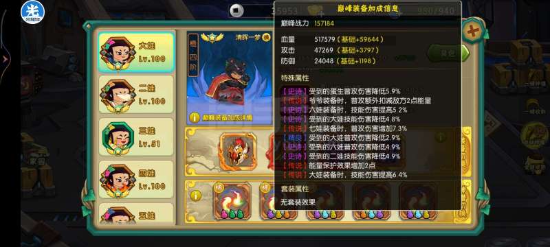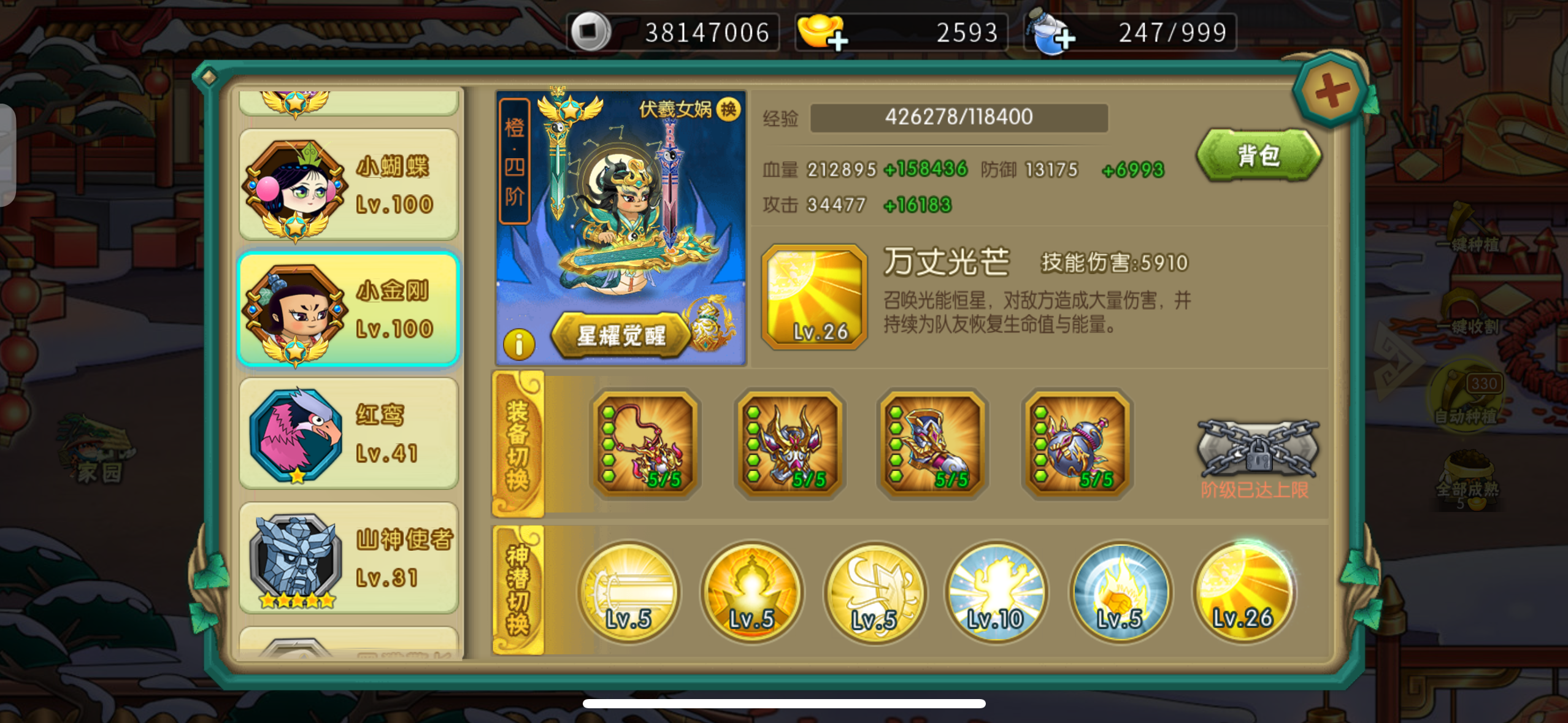 葫芦娃【安卓4399】准V9号,属性高,已经通19章了,账号是死绑