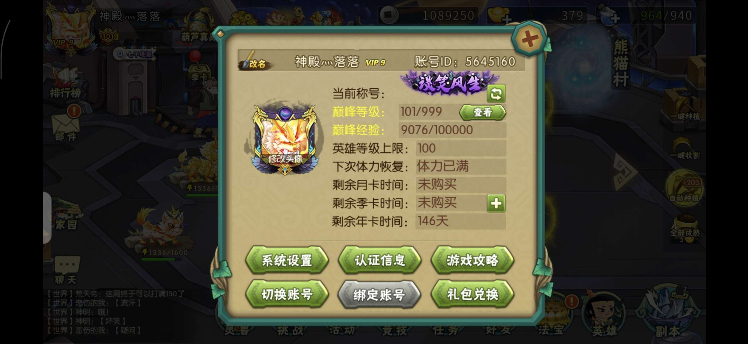 开学了 没时间玩,v9账号,季卡月卡年卡都有,账号数据自己看图片,有至尊农场,然后福禄卡