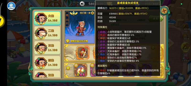 葫芦娃【安卓其他】112级v5全英雄,有4个神兽都可以觉醒还有6个6潜已开有喜欢的可以看看急需用钱可以小砍价最后可换绑