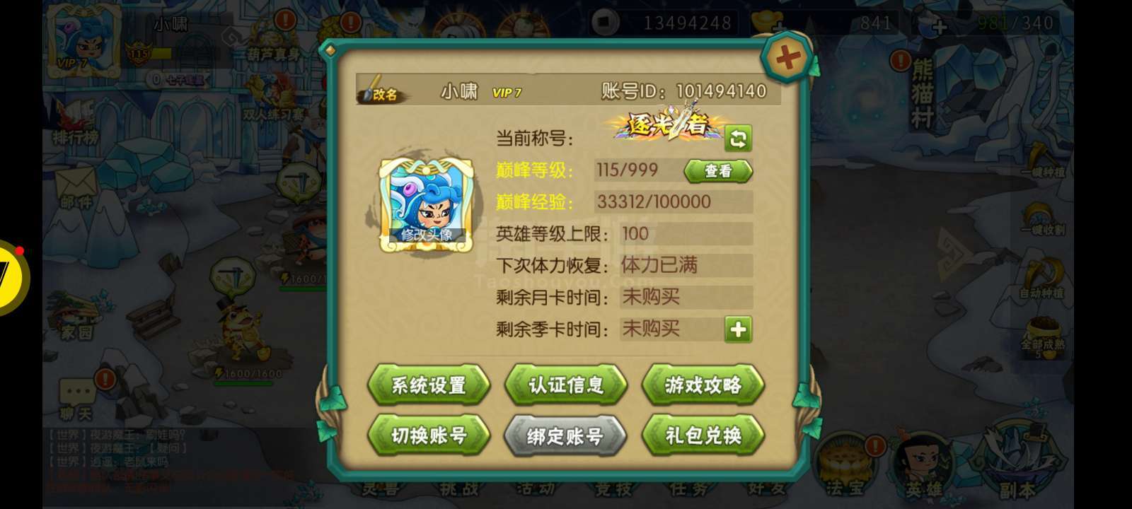 葫芦娃【安卓小7手游】一年多,新区神兽多,资源多月卡季卡都有时间长小7不能换绑