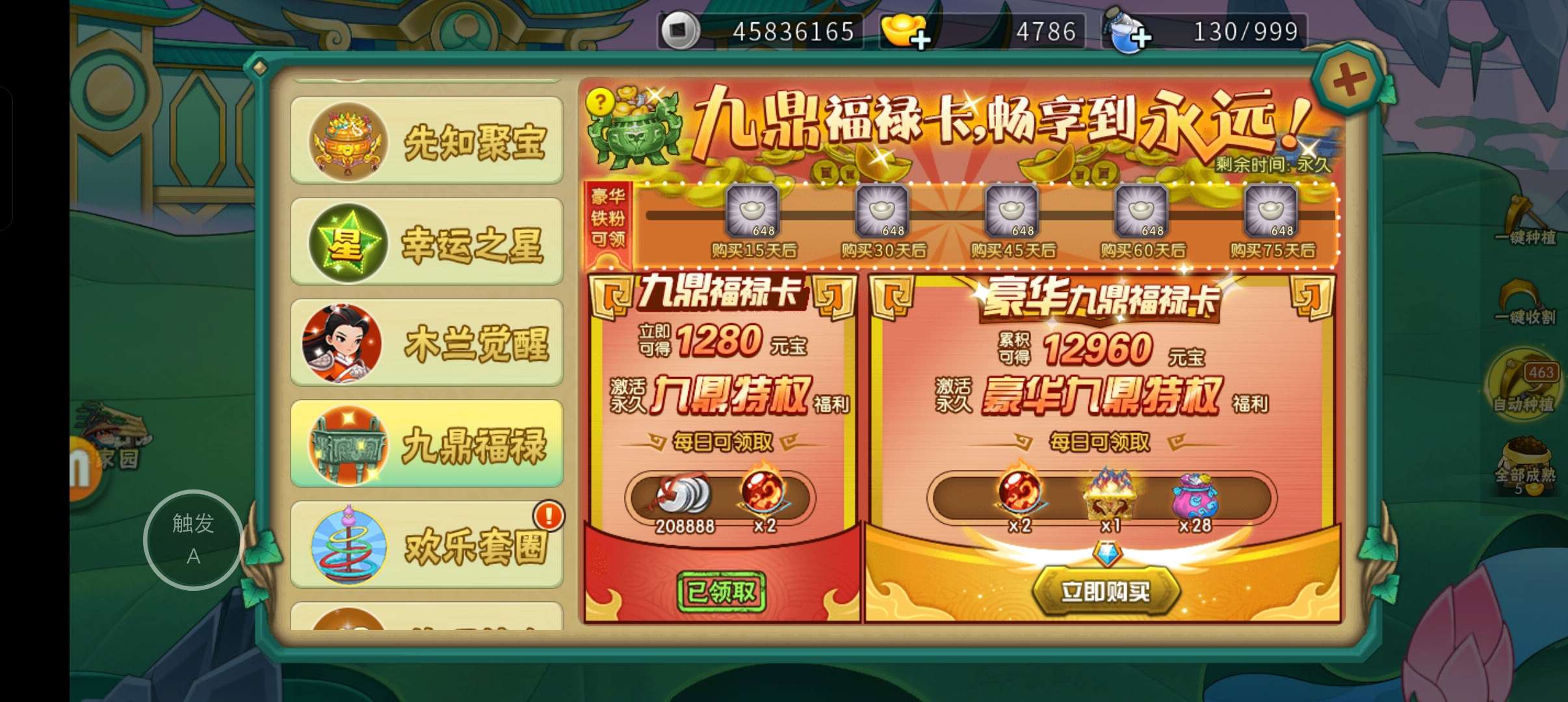 年卡,久鼎福禄,铁粉福禄全有,年卡没有段过,季卡月卡时间久,80多个称号,进游戏8个神兽之主称号。