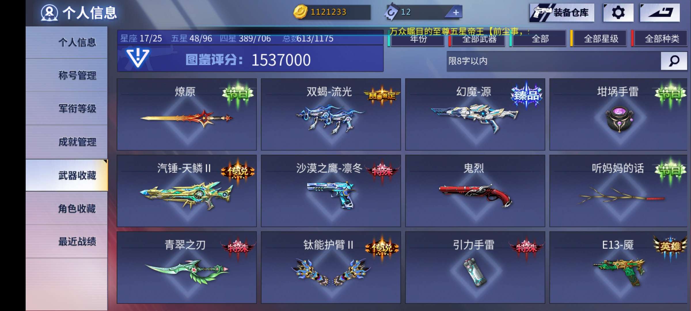 性价比账号8传说鹰王满配爆破的王卡牌镰刀护臂三件套应有尽有可小砍