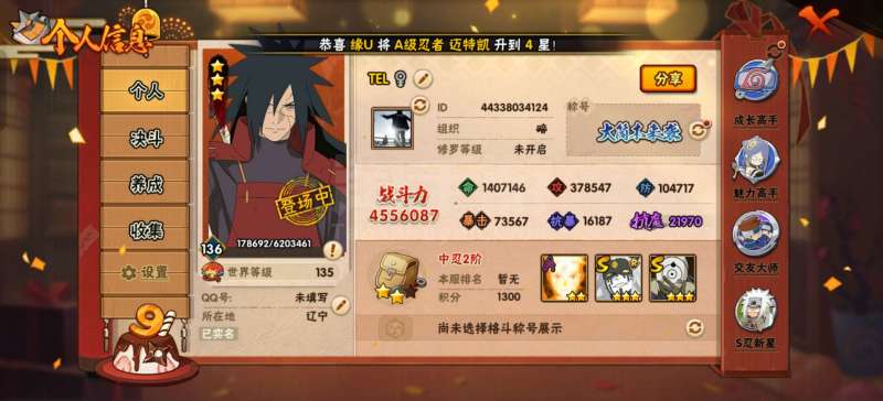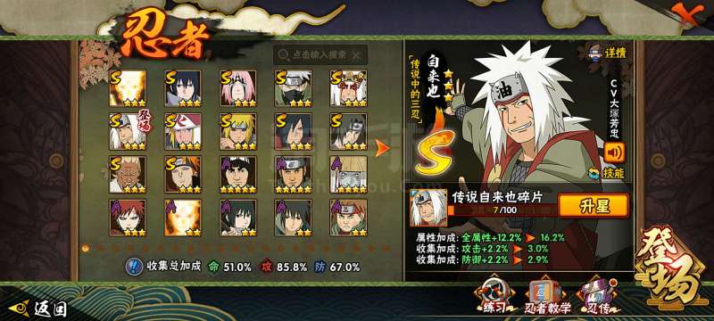 火影忍者【安卓QQ】3000万战力,绝版妙木山场景,缺的忍者如图,还带一个王者