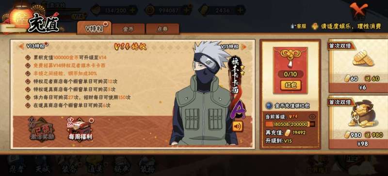 火影忍者【安卓微信】忍法帖已买v14送王者V9一体号