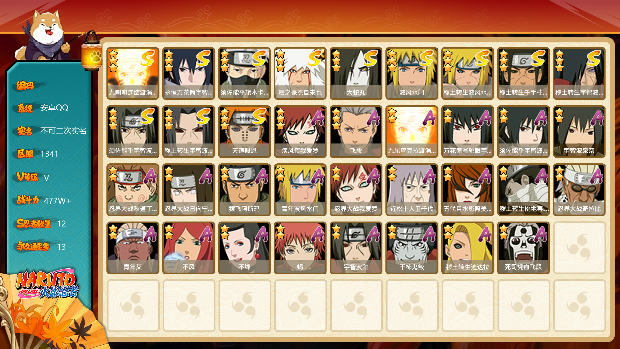 火影忍者【安卓QQ】战斗力:477W+;本服排名:1427 ;