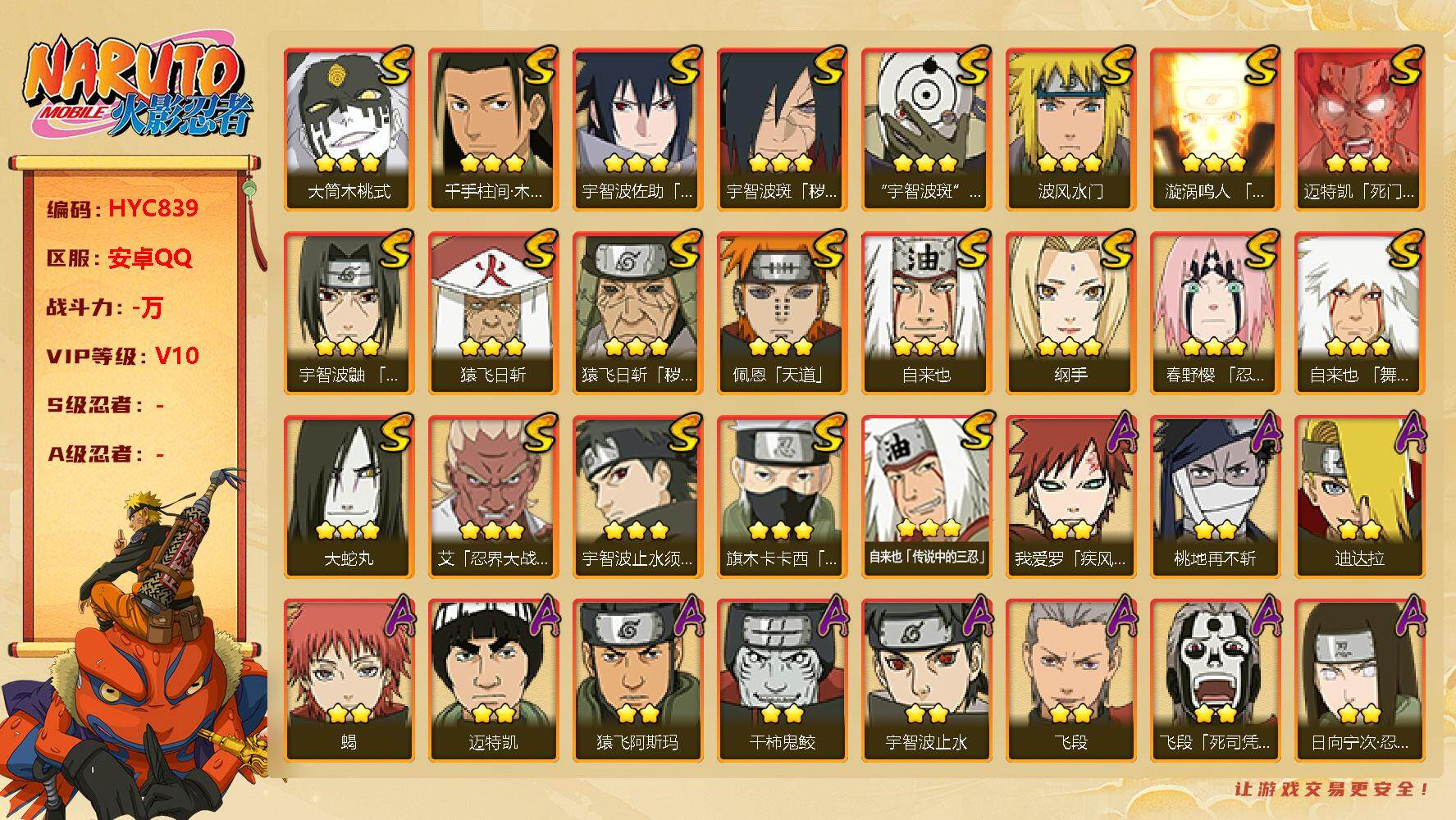 火影忍者【安卓微信】精品V10号,全服前百战力,各种点卷忍者