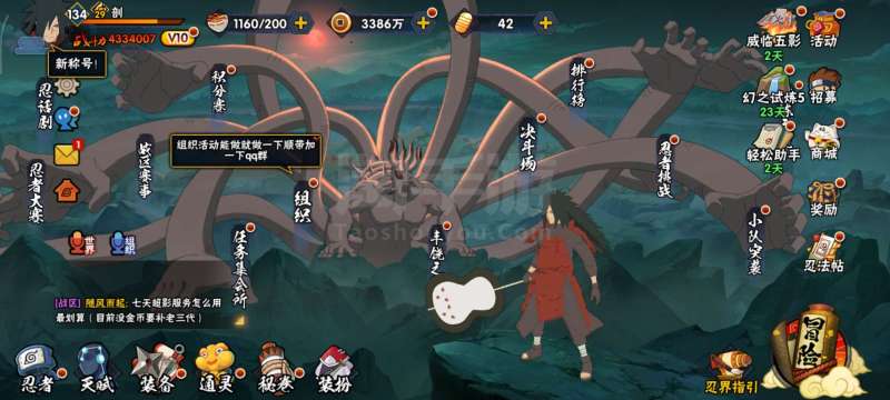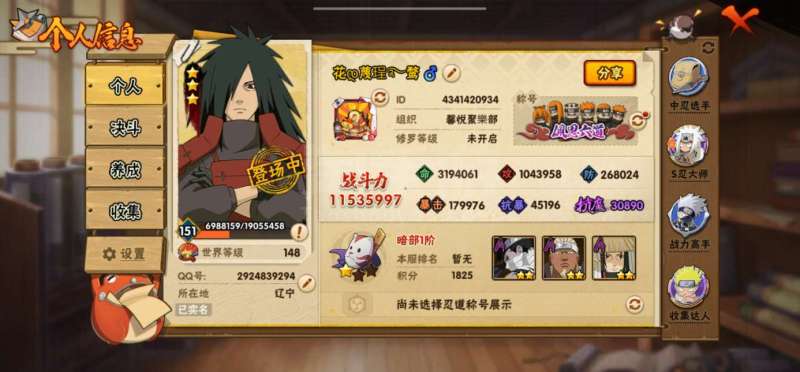 火影忍者【安卓QQ】v12,组织排名全服第一,1800w战力,35s准39s ,48A,超哥,众多s,须佐止