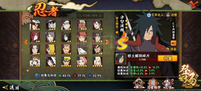 火影忍者【安卓QQ】VIP10,1268W战力,S忍22个,A忍38个