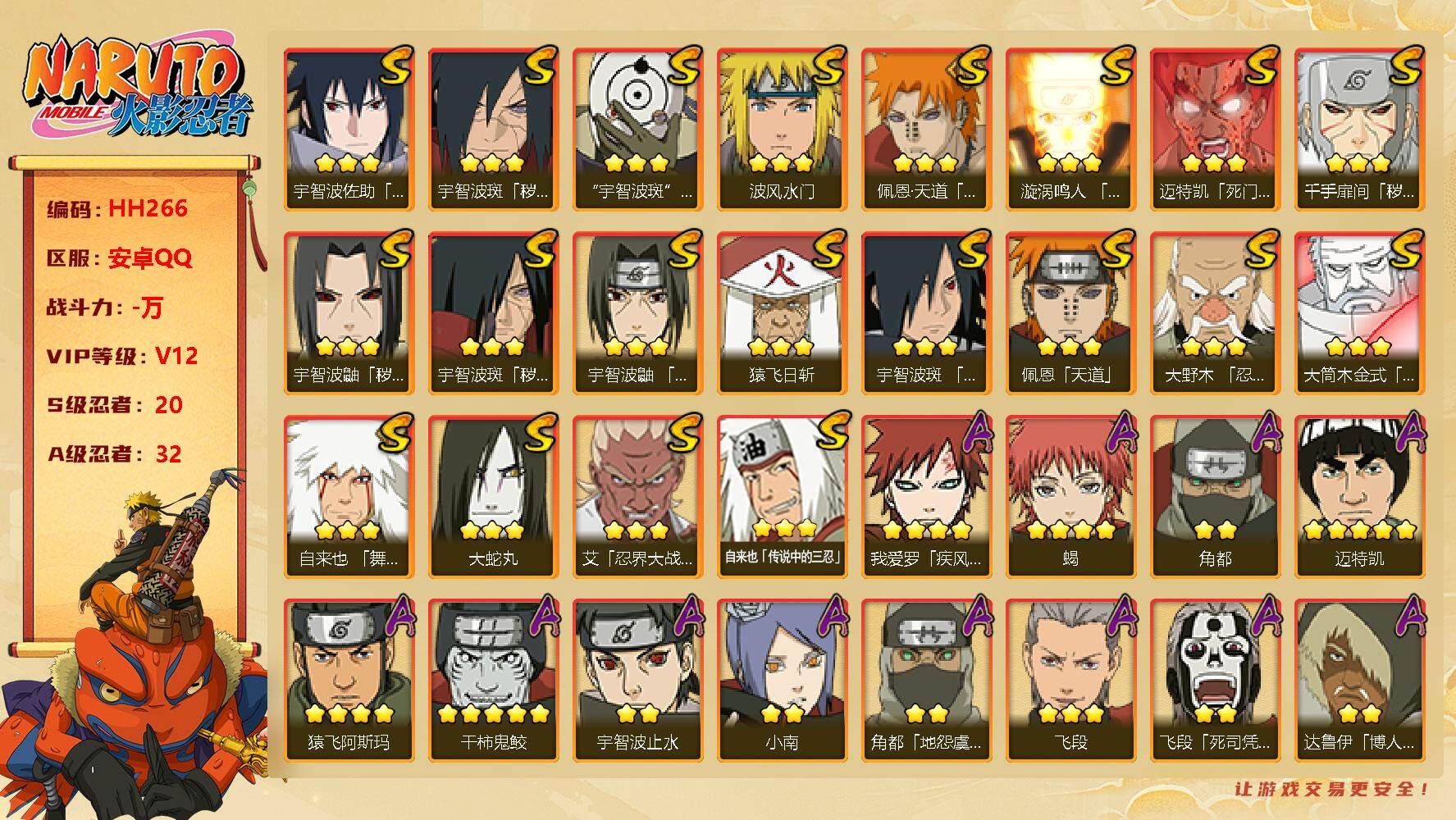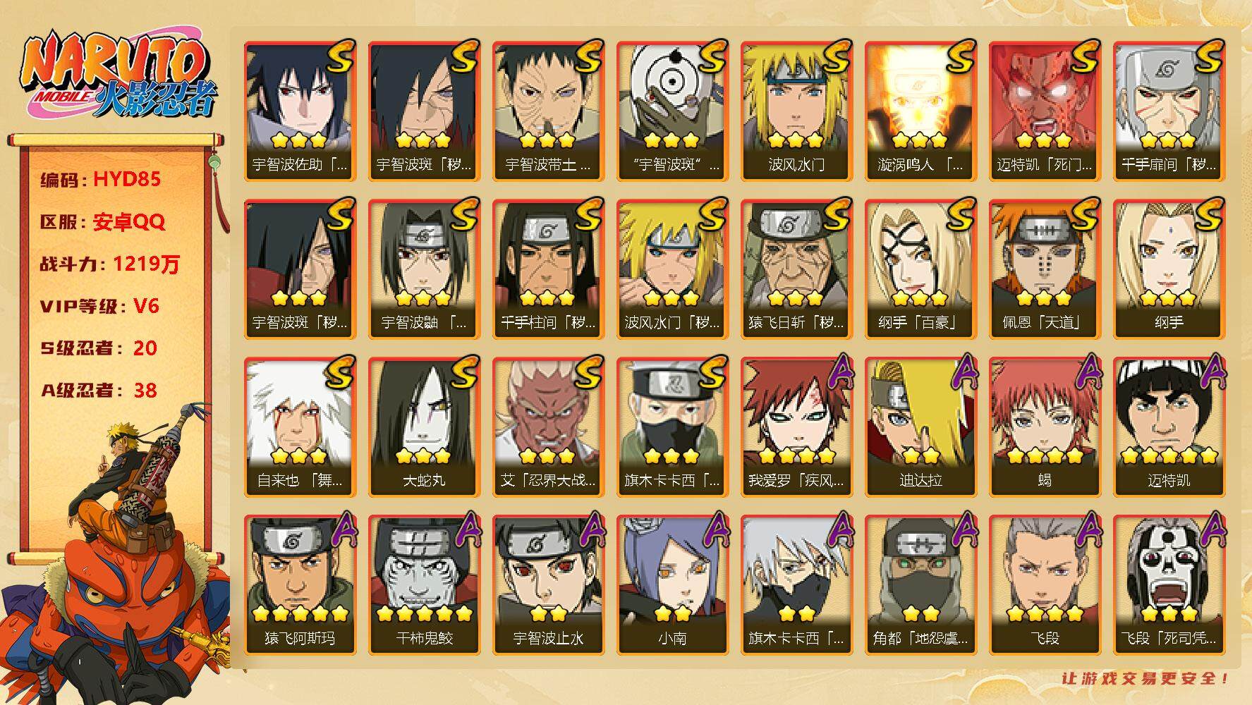 火影忍者【安卓QQ】V6/战力1219W/S忍20/A忍38/