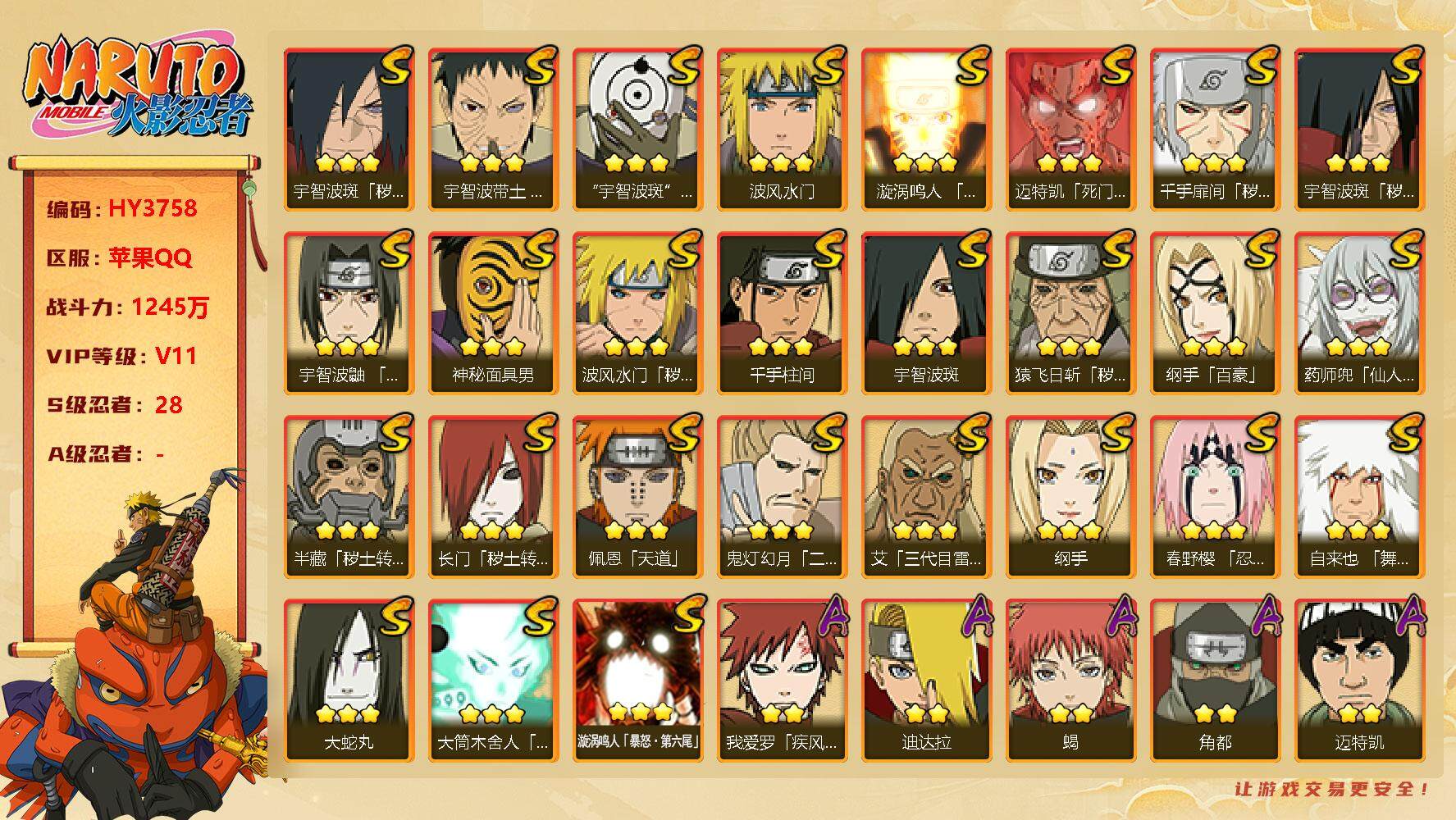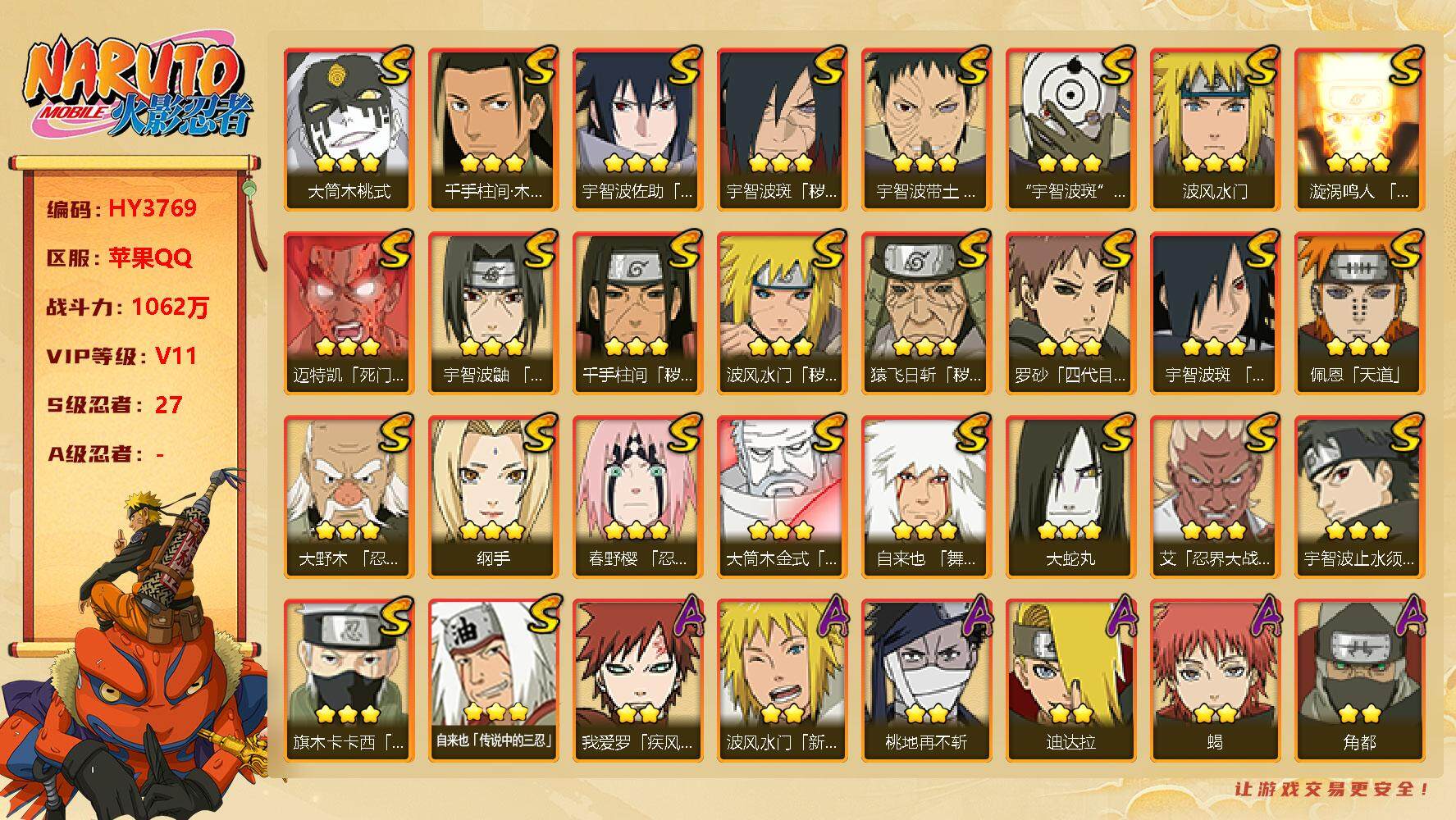 火影忍者【苹果QQ】V11/战力1062W/S忍27/