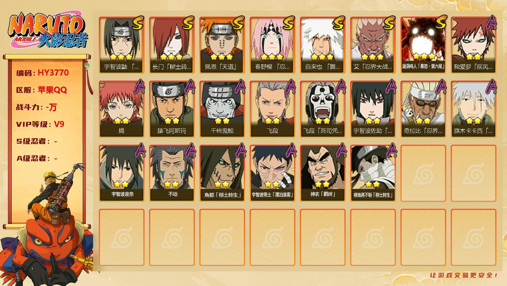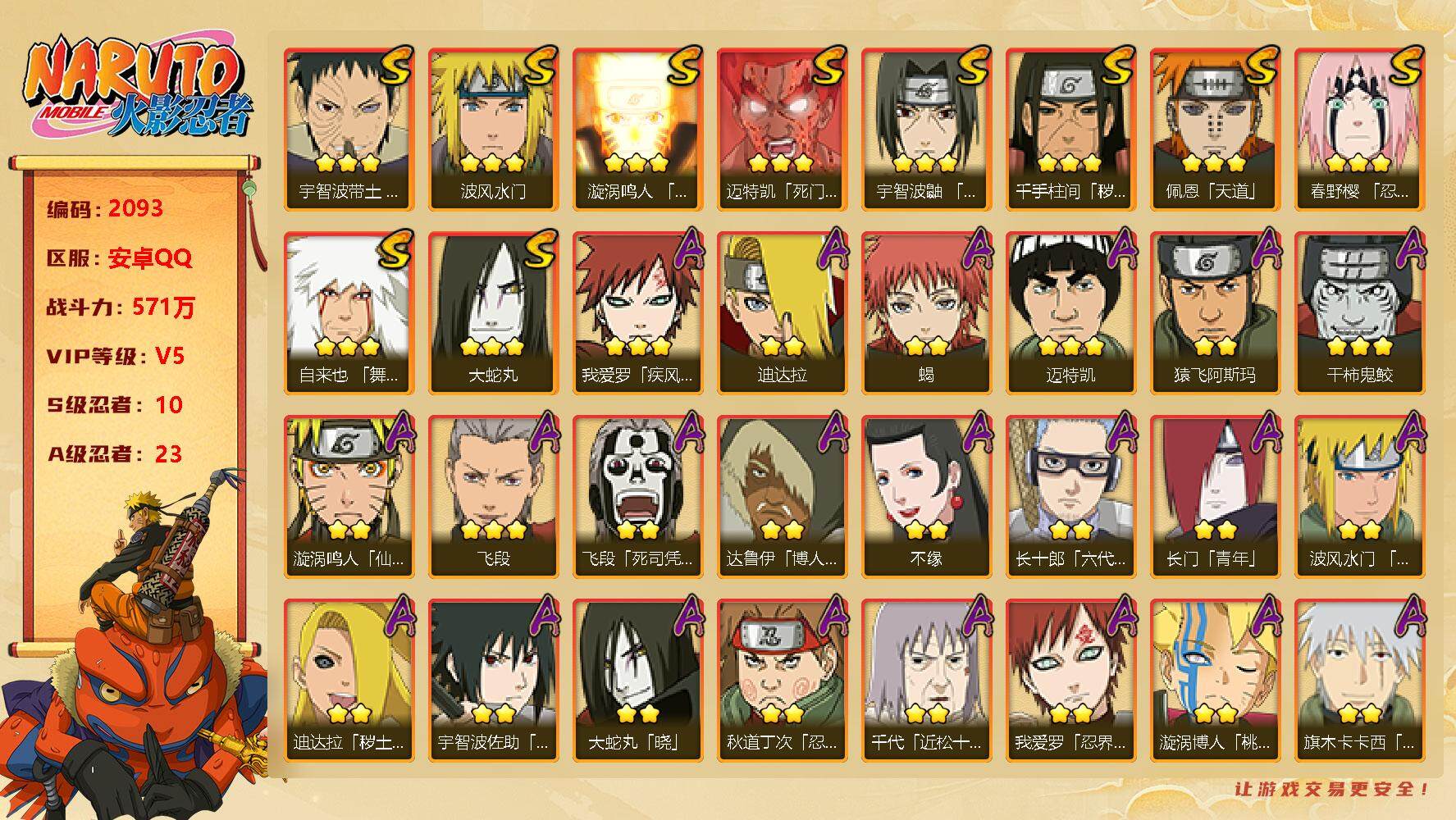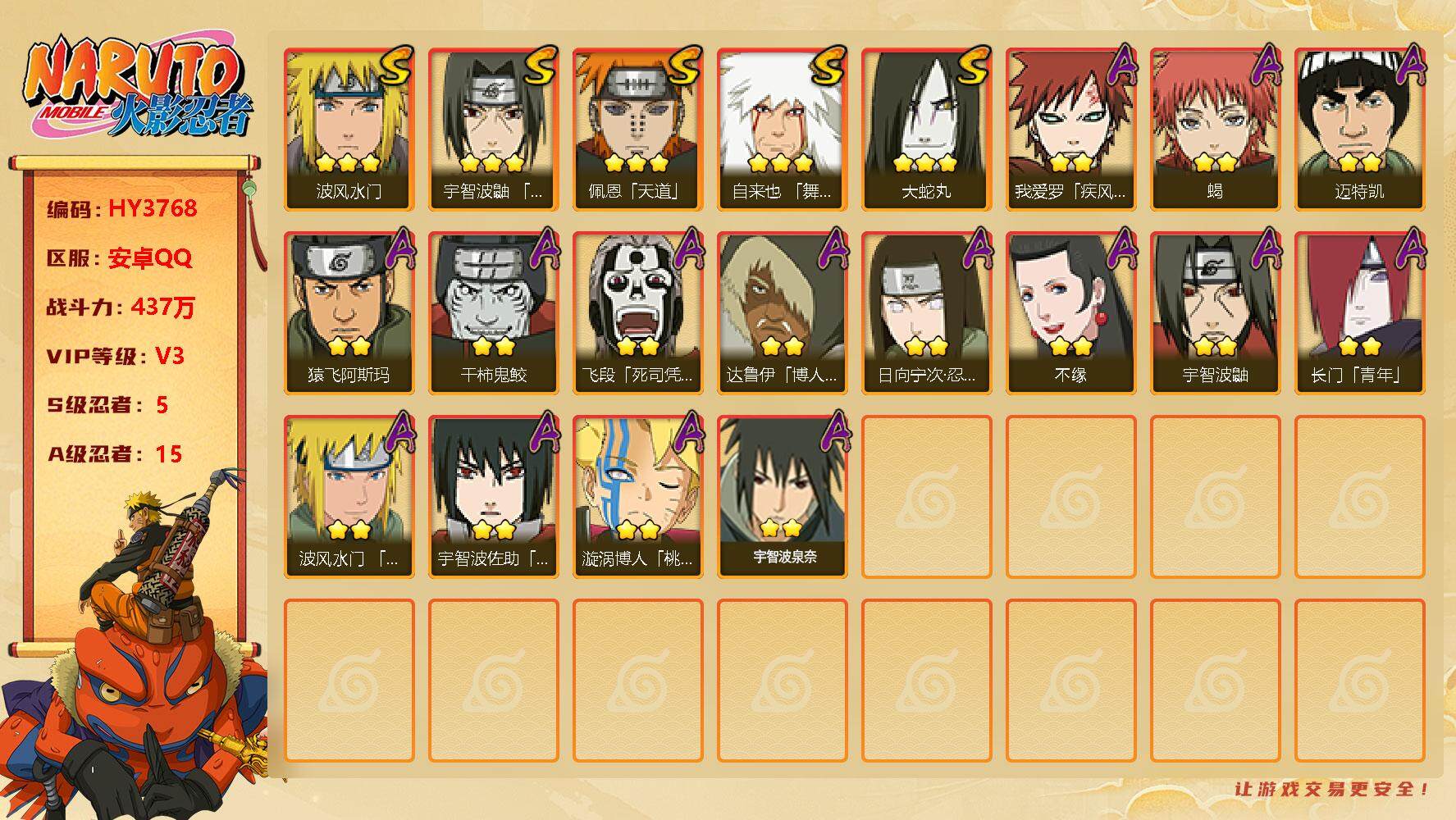 火影忍者【安卓QQ】V3/战力437W/S忍5/A忍15/