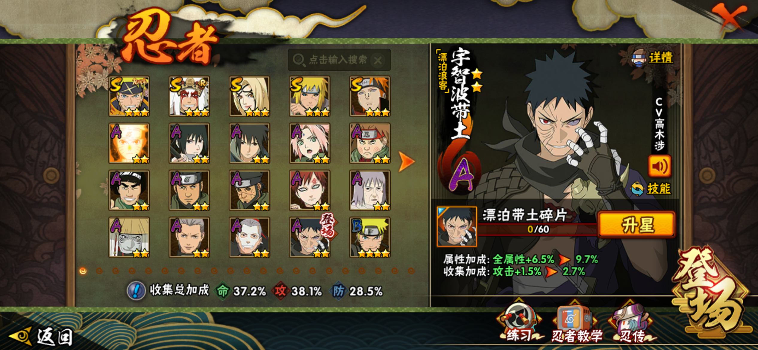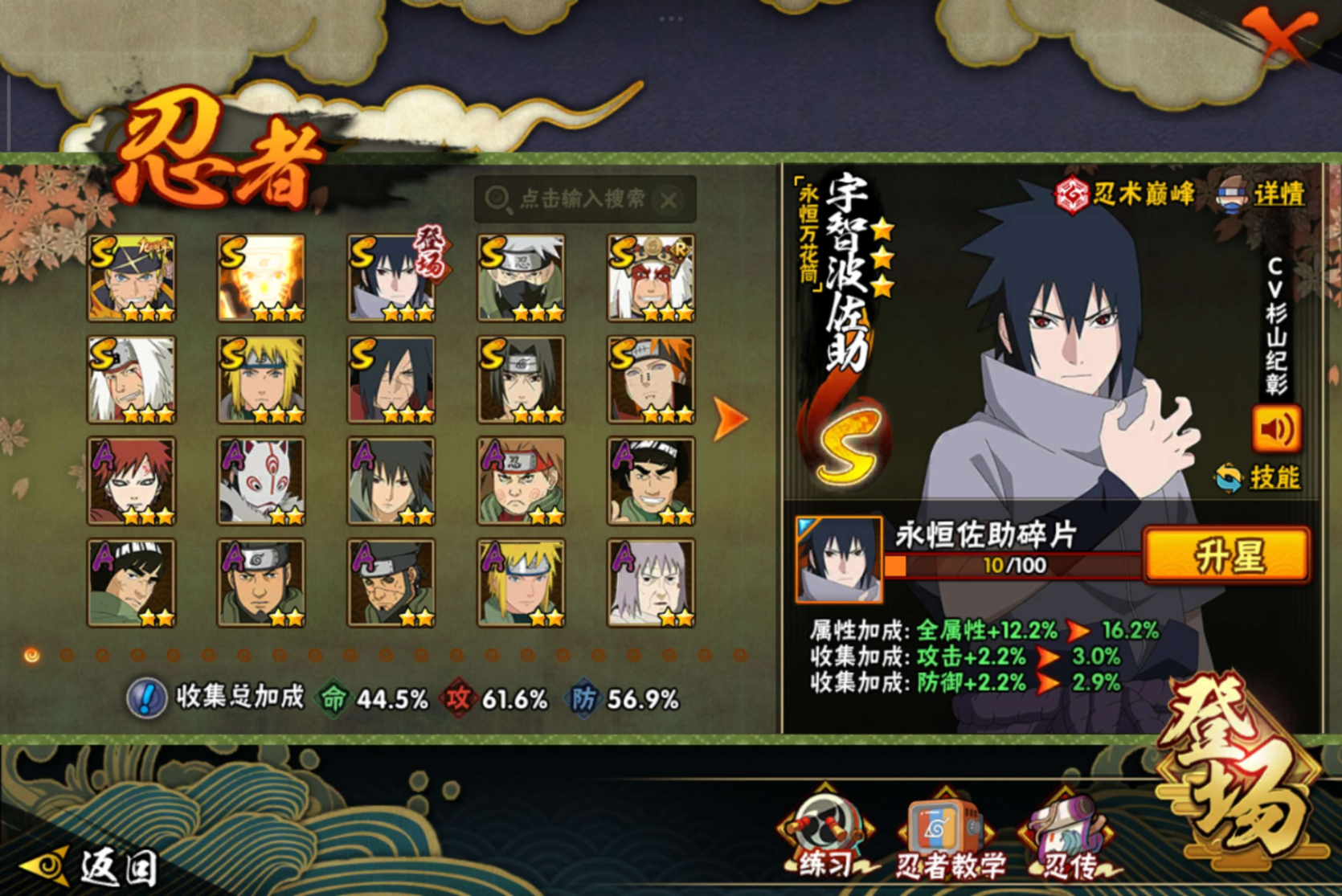 v11,23s准27s,32A,1000w战力,超哥85片,须佐止水80片,仙人自来也73片,死水7