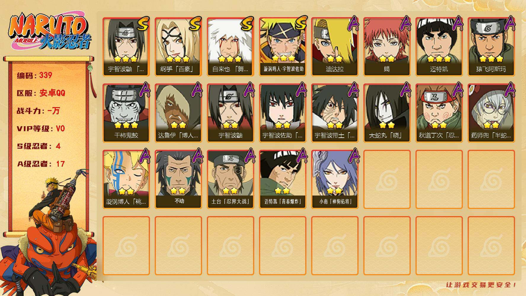 安卓QQ♦20万金币号+百战水门+川自+百战佩恩+百战鼬+青水
